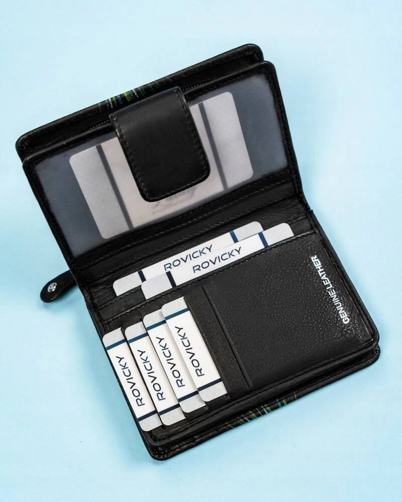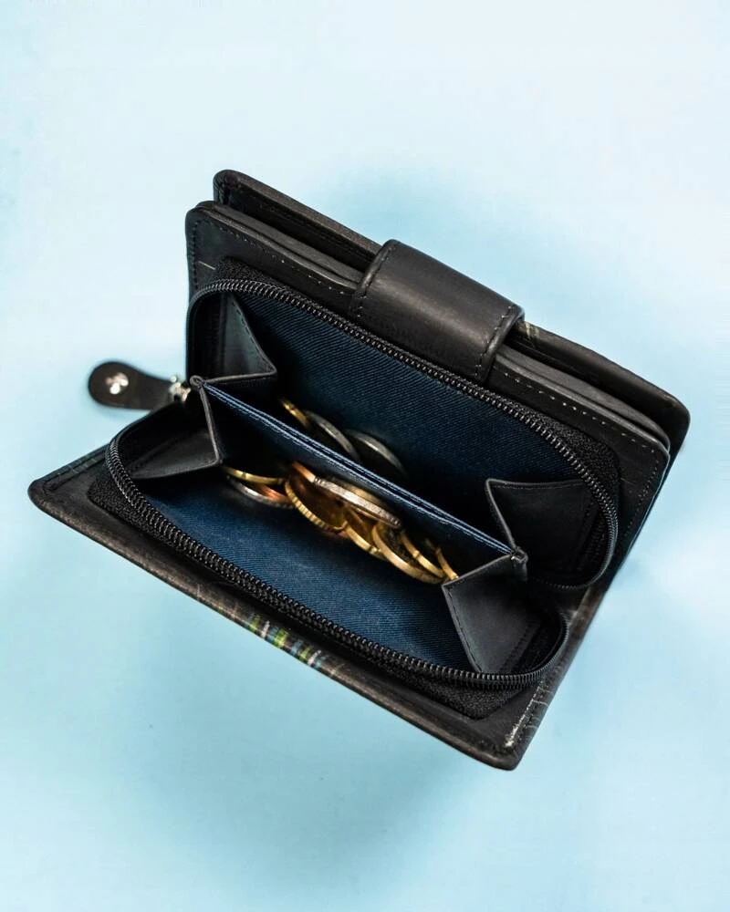 Odpowiedni podział schowków idealnie sprawdzi się jeśli potrzebujesz przechowywać kilka walut. Dzięki podwójnym kieszonkom możesz je komfortowo rozdzielić.