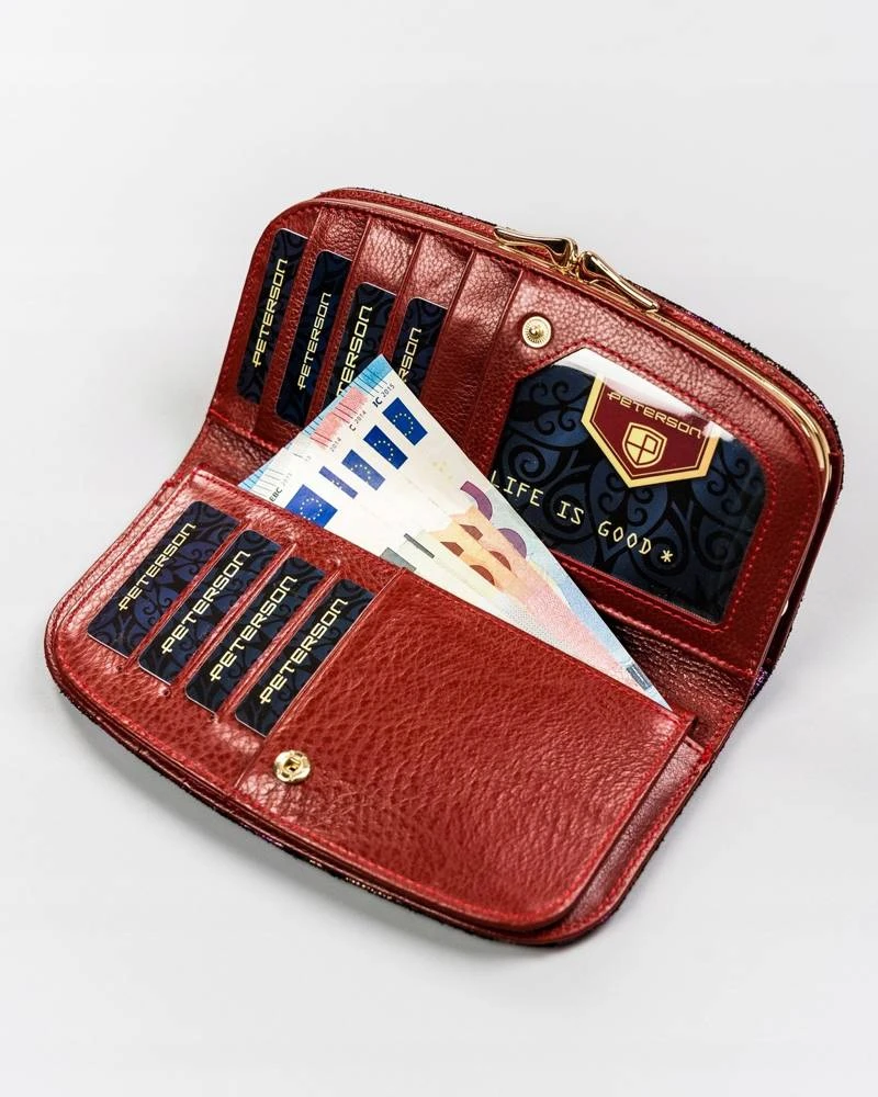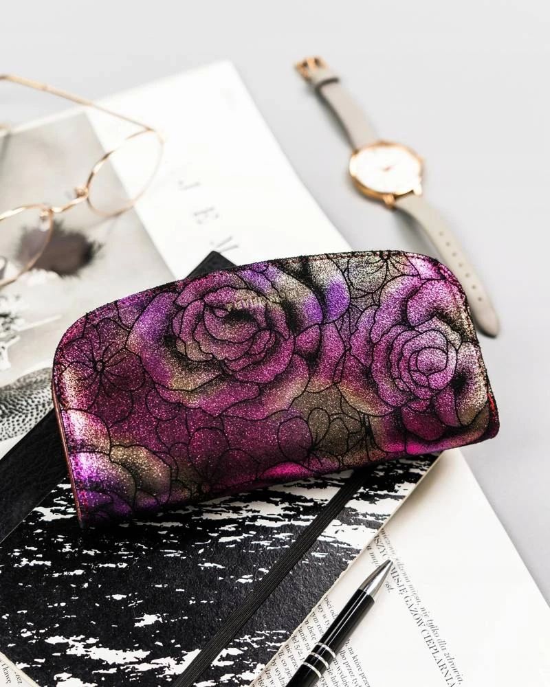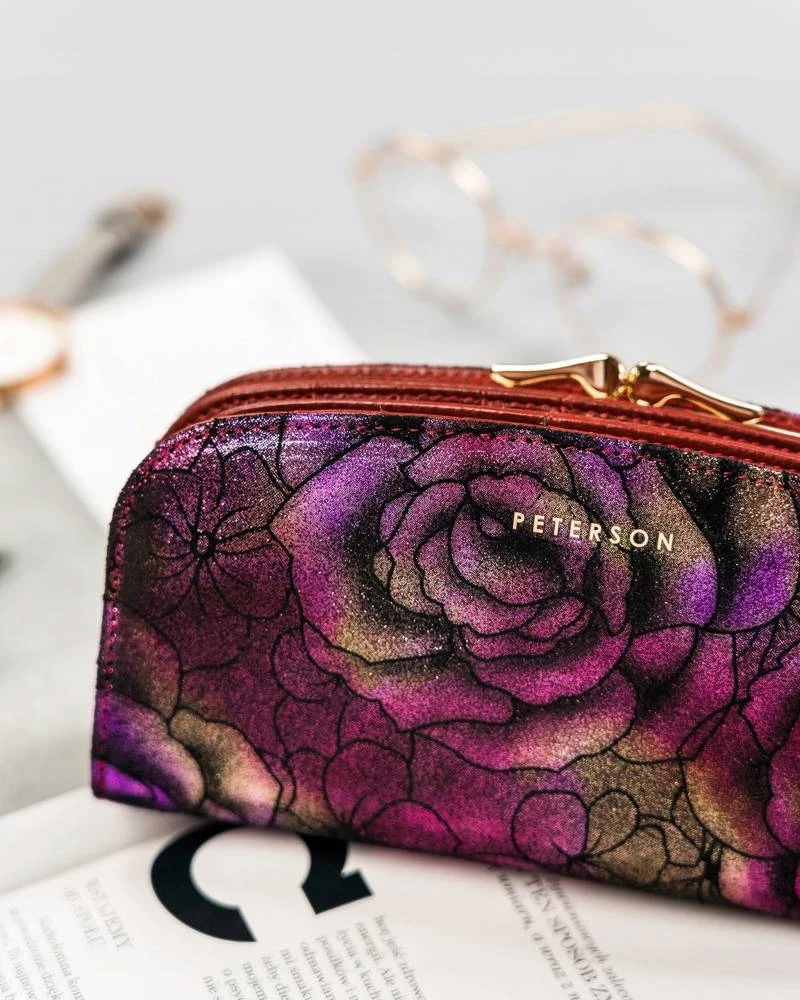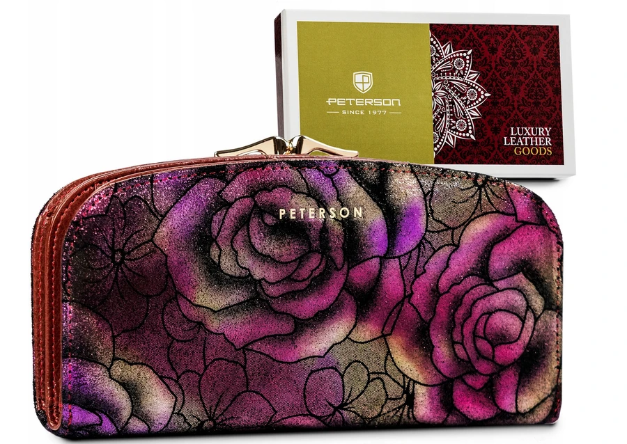 Duży, pojemny portfel ze skóry naturalnej z kwiatowym wzorem — Peterson