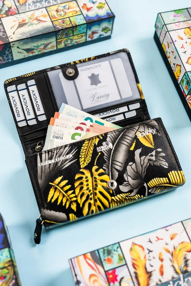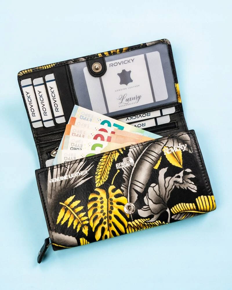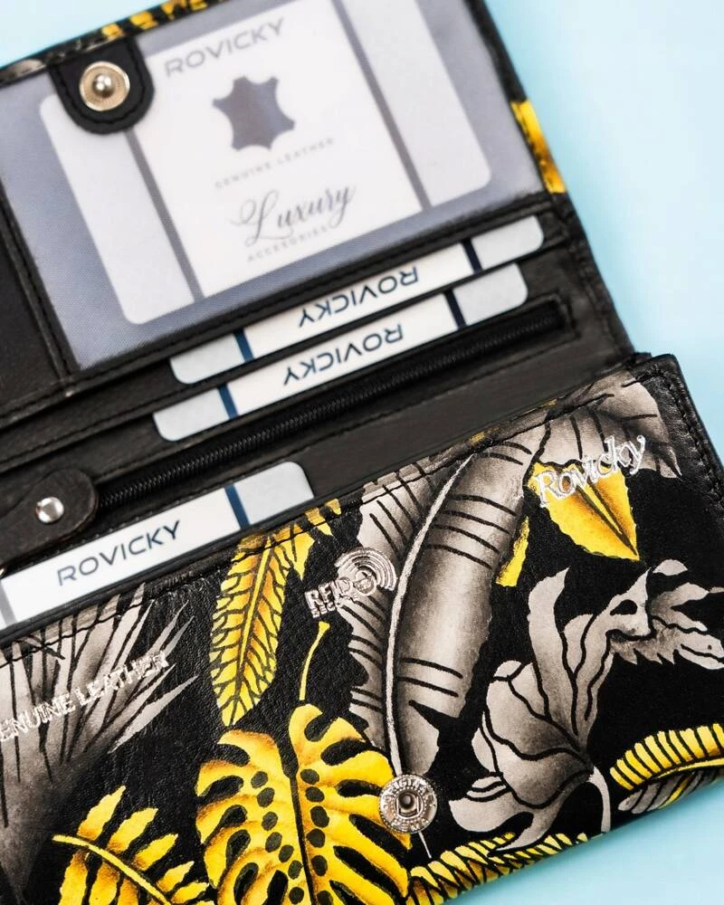 Duży, skórzany portfel damski na zatrzask - Rovicky