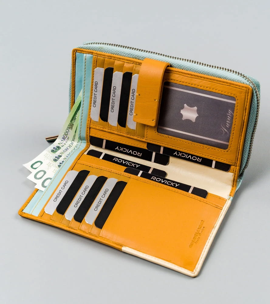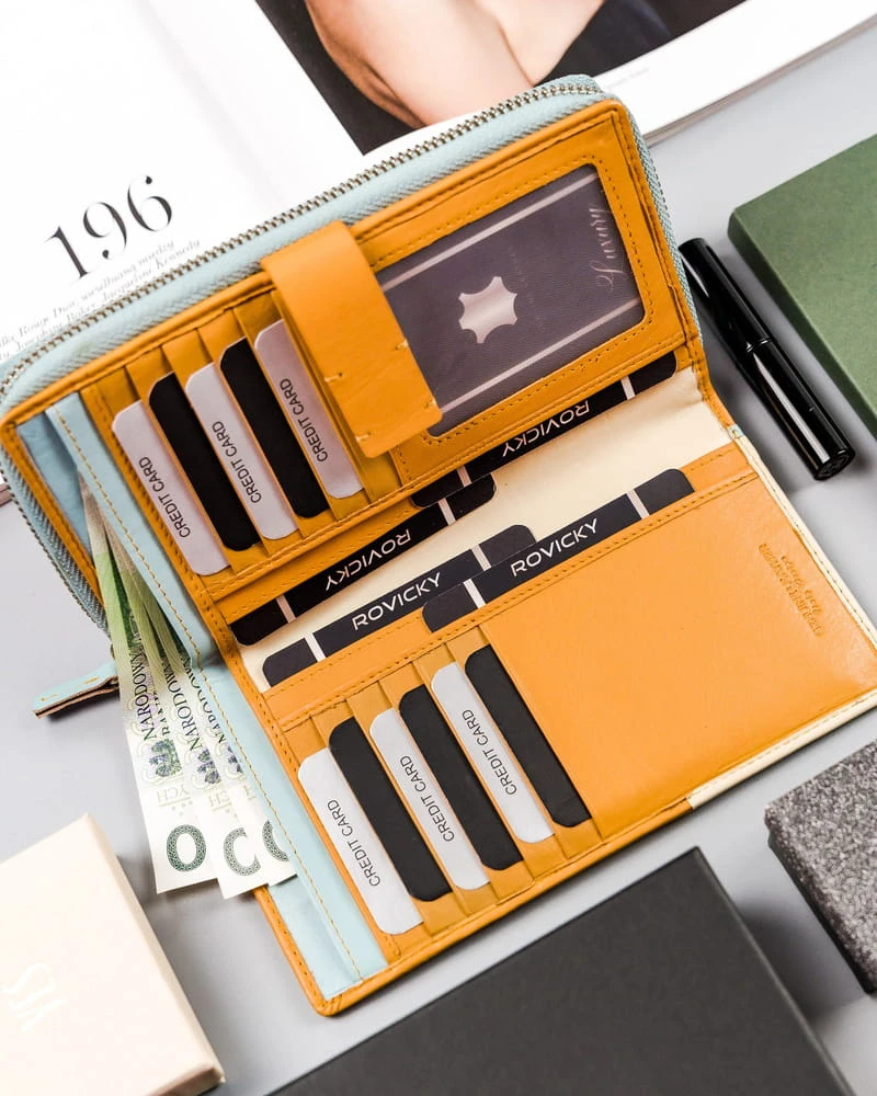Kolorowy portfel damski z dwiema sekcjami, skóra naturalna — Rovicky