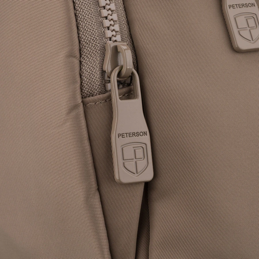 Beżowa listonoszka damska z poliestru zawieszona na szerokim pasku, dwukomorowa - Peterson