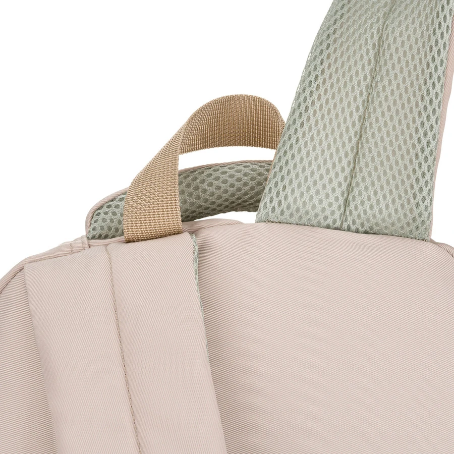 Z przodu znajdują się dwa paski z klamrami, które umożliwiają przypięcie zrolowanej bluzy, lekkiej kurtki lub maty. Dzięki temu dziecko nie musi upychać odzieży do środka – wszystko ma swoje miejsce.