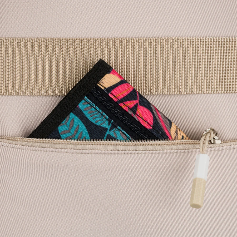 Z tyłu plecaka umieszczono dyskretną kieszeń zapinaną na suwak – idealną do przechowywania portfela, telefonu lub ważnych drobiazgów. Umiejscowienie przy plecach zwiększa bezpieczeństwo zawartości.