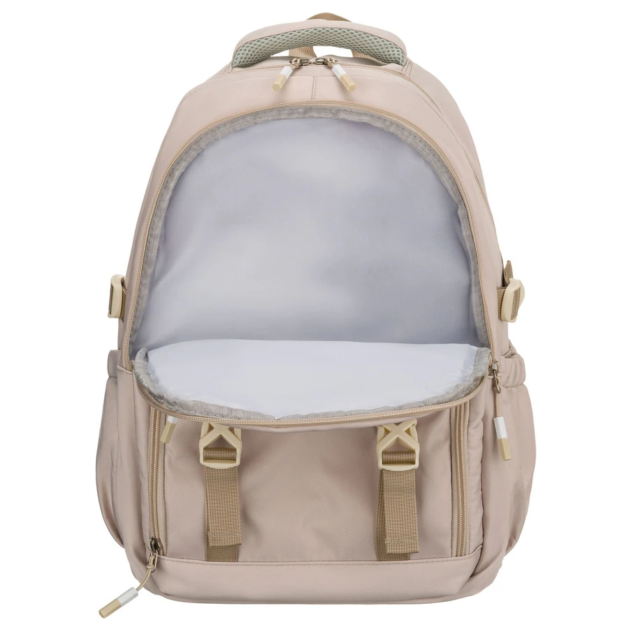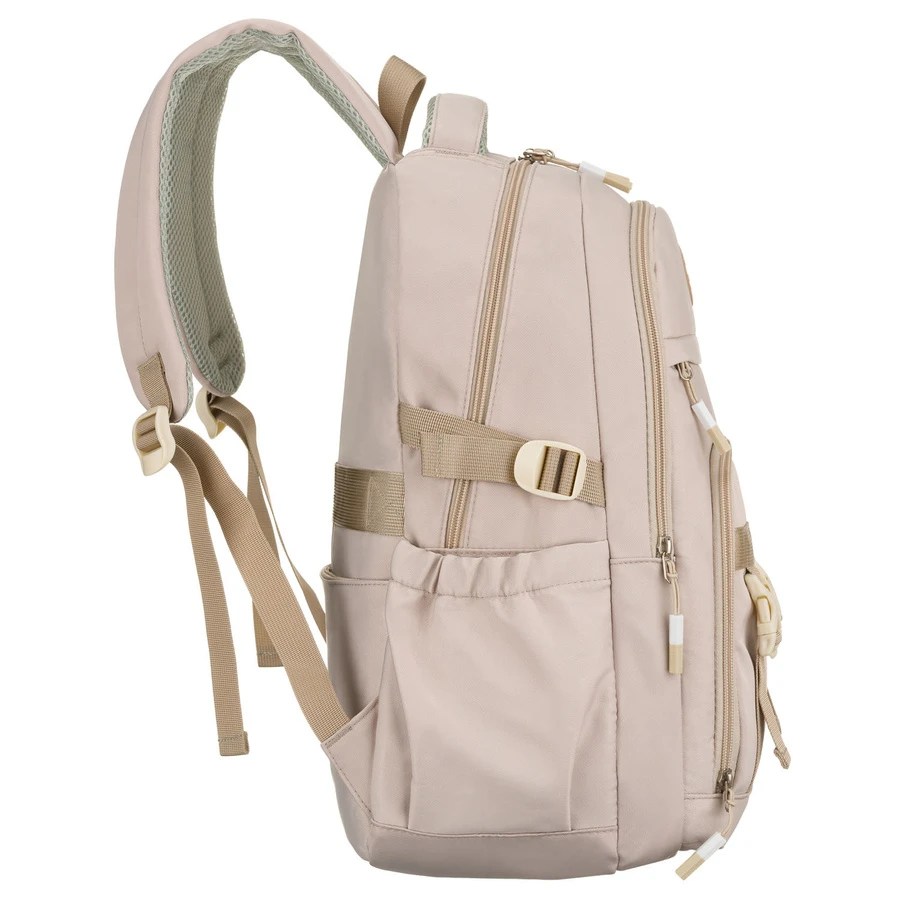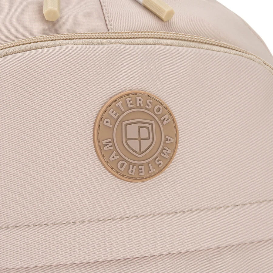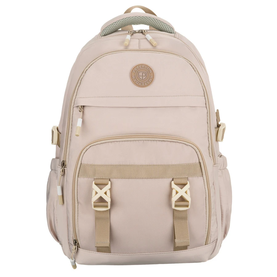 Beżowy, modny plecak szkolny z poliestru zawieszony na regulowanych szelkach - Peterson