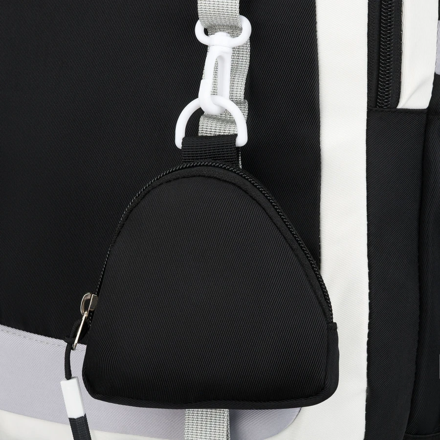 Białoczarny plecak szkolny z poliestru z poręczną dodatkową saszetką - Peterson