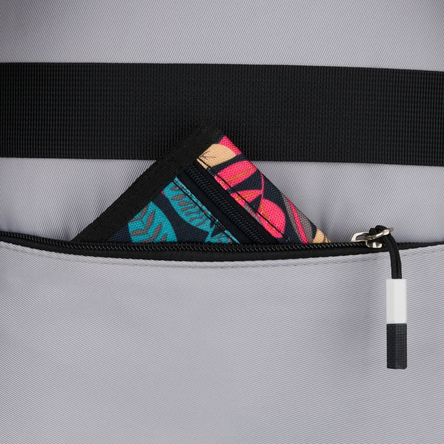 - Z przodu znajduje się dodatkowa kieszonka zapinana na suwak, która zapewnia szybki dostęp do drobiazgów.