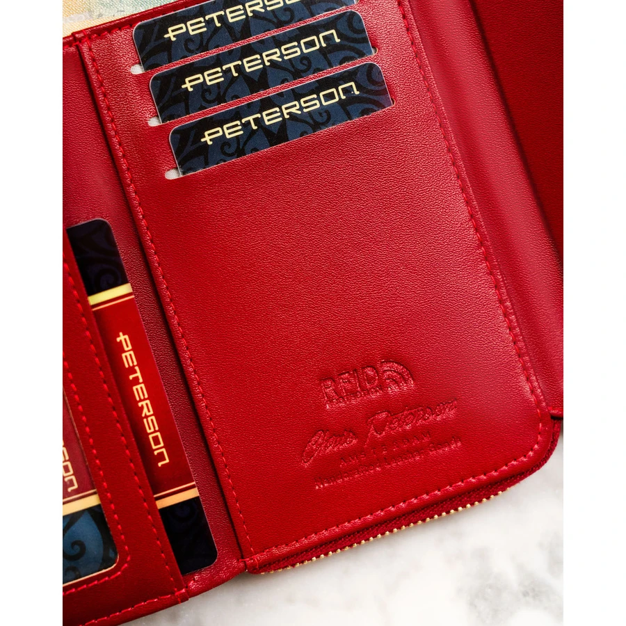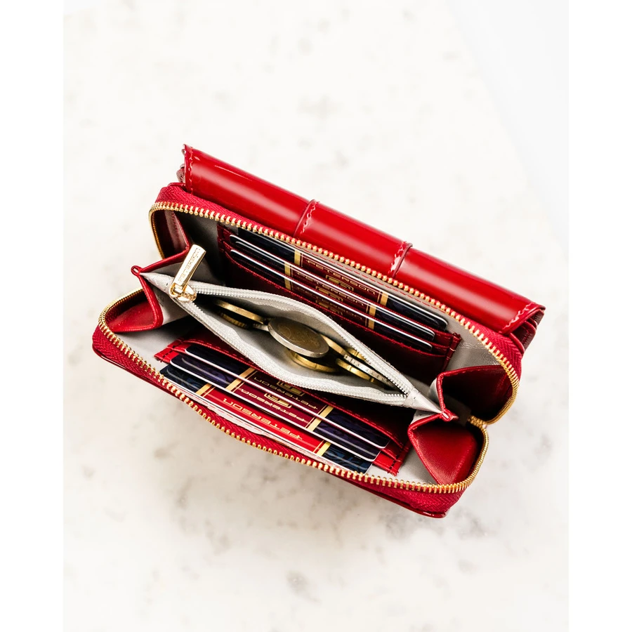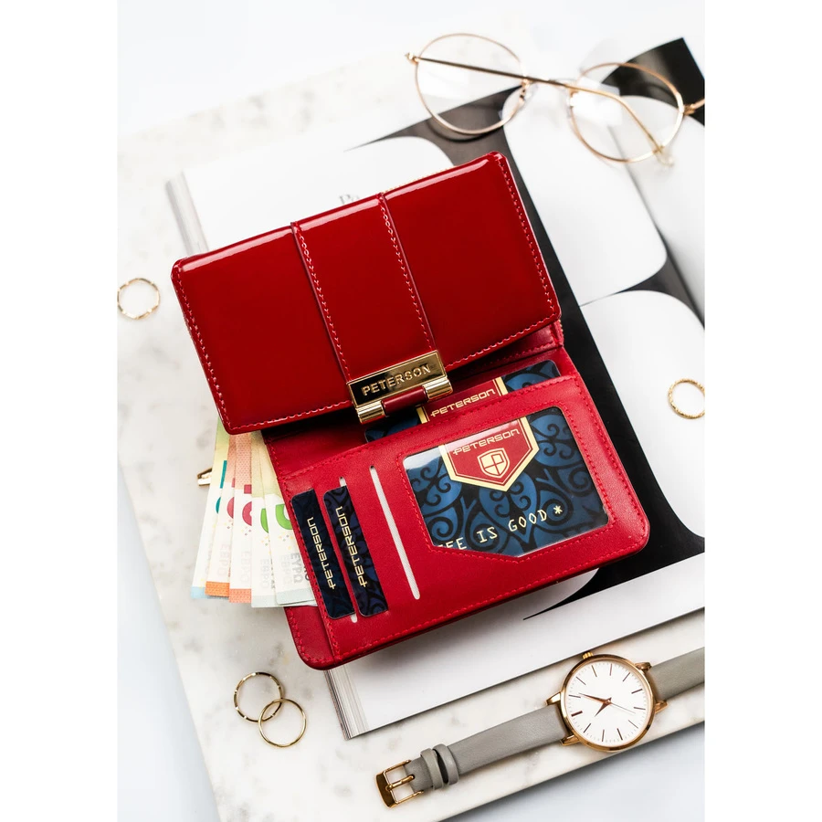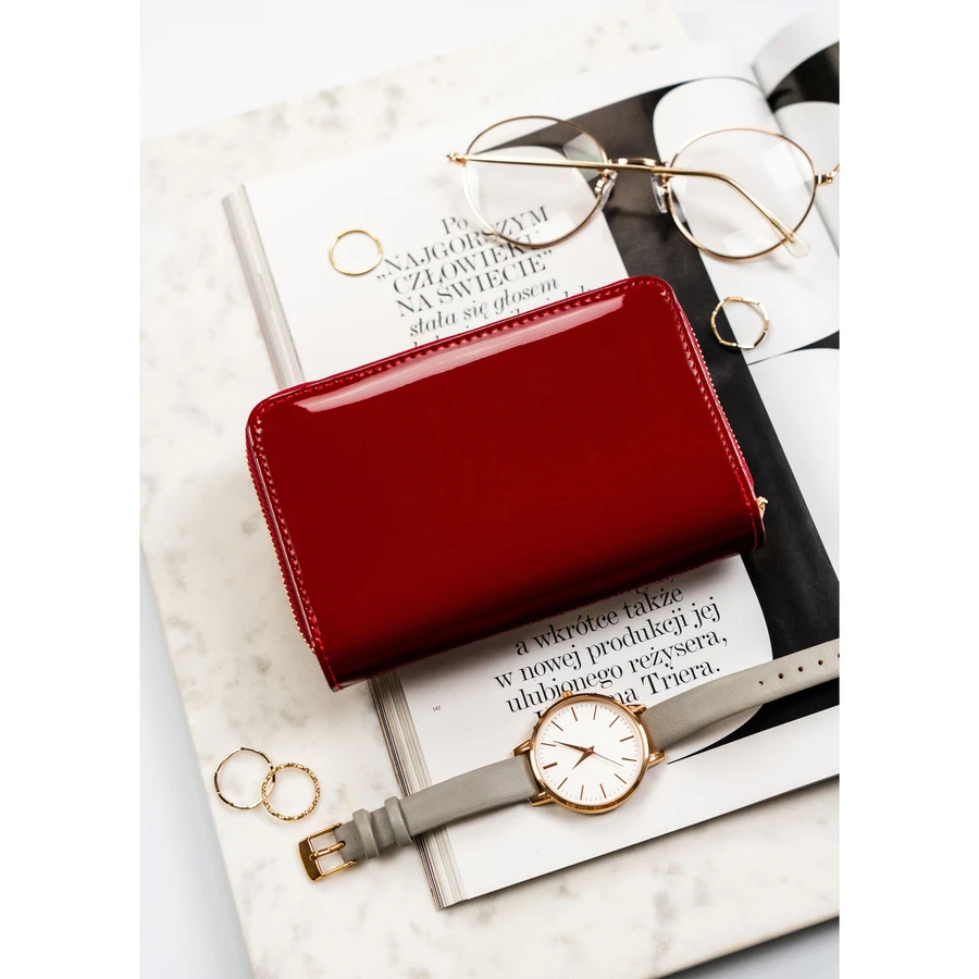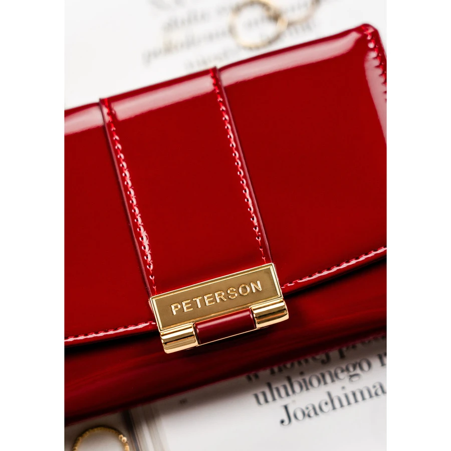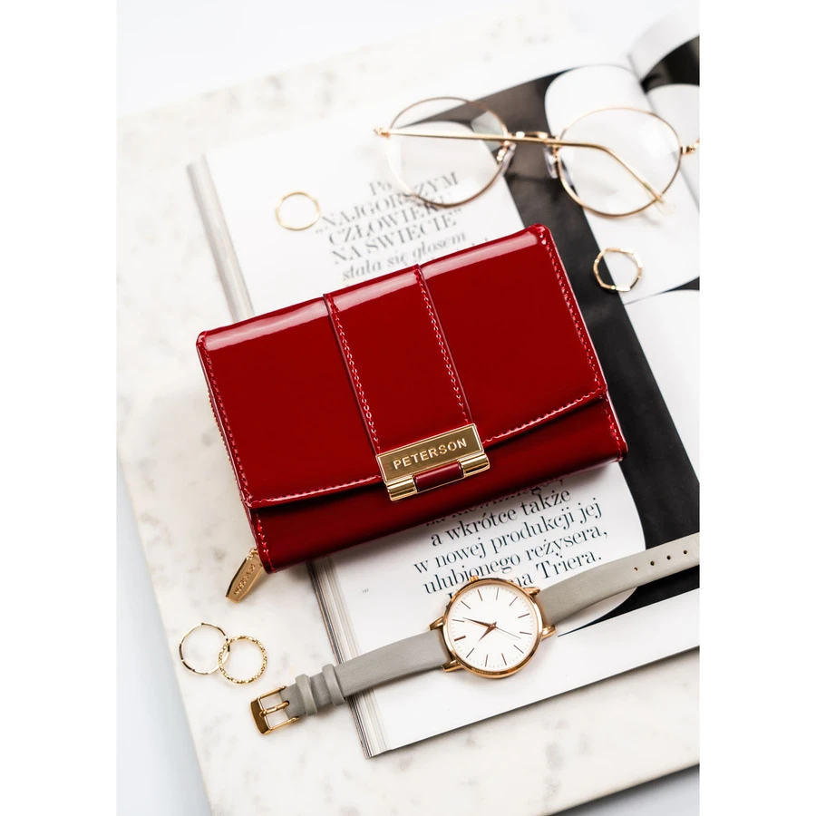 Bordowy, poziomy portfel damski wykonany z lakierowanej skóry ekologicznej - Peterson | Niua.pl