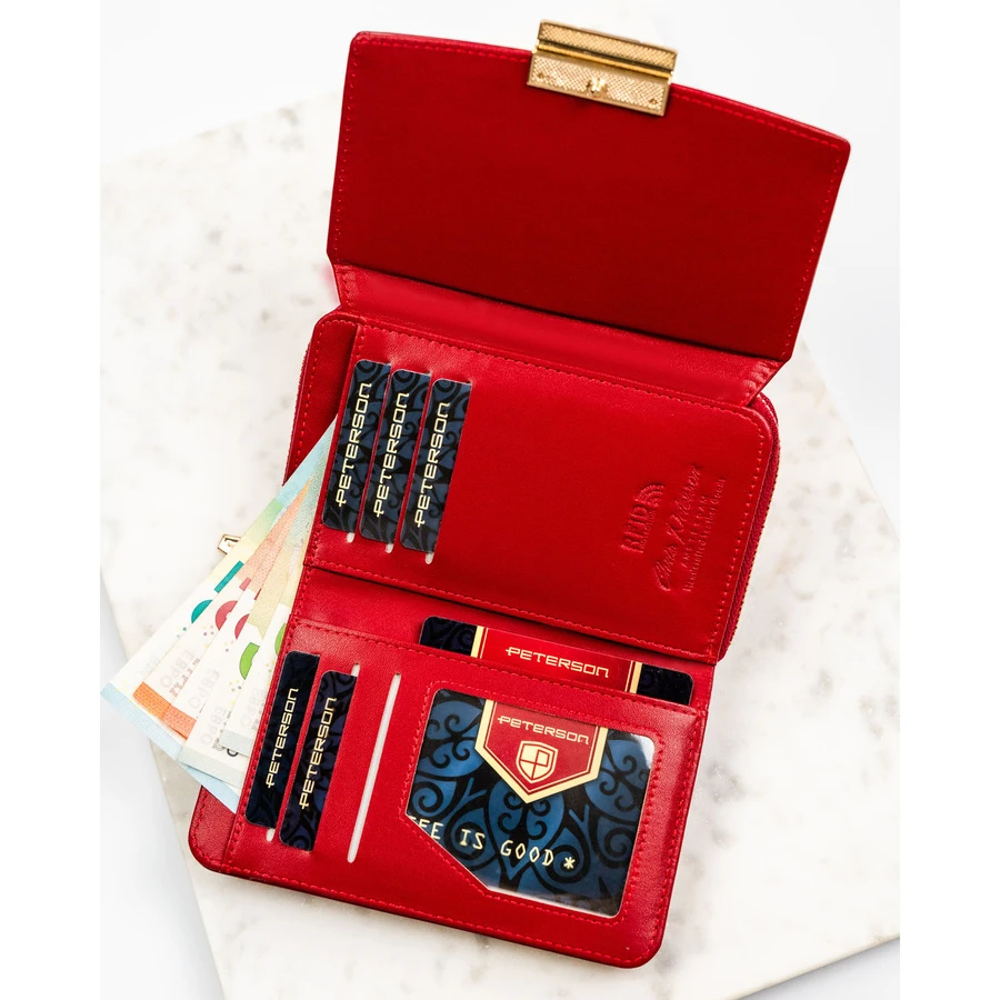 - Oddzielna sekcja na bilon zamykana na trwały suwak - wygodny dostęp i bezpieczeństwo.