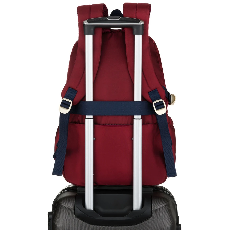 Z tyłu znajduje się specjalny pasek, który pozwala na wygodne zamocowanie plecaka na rączce walizki. To świetna opcja podczas szkolnych wyjazdów lub rodzinnych podróży.