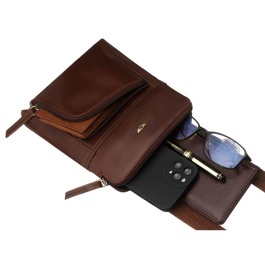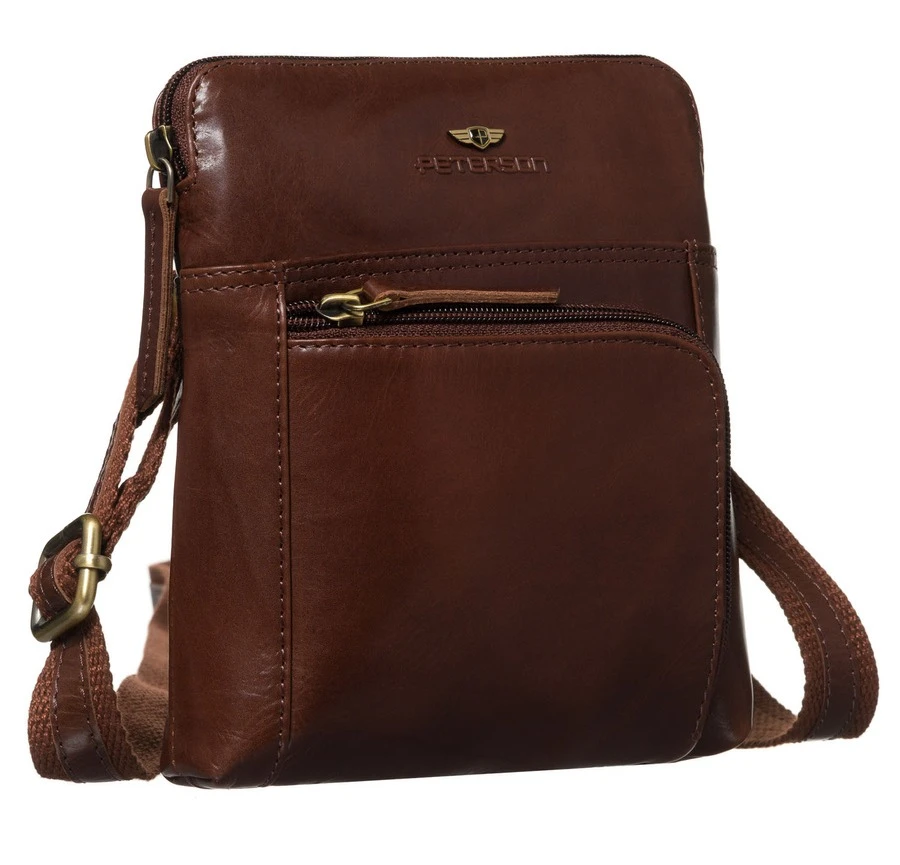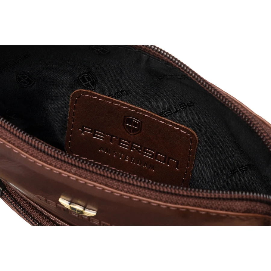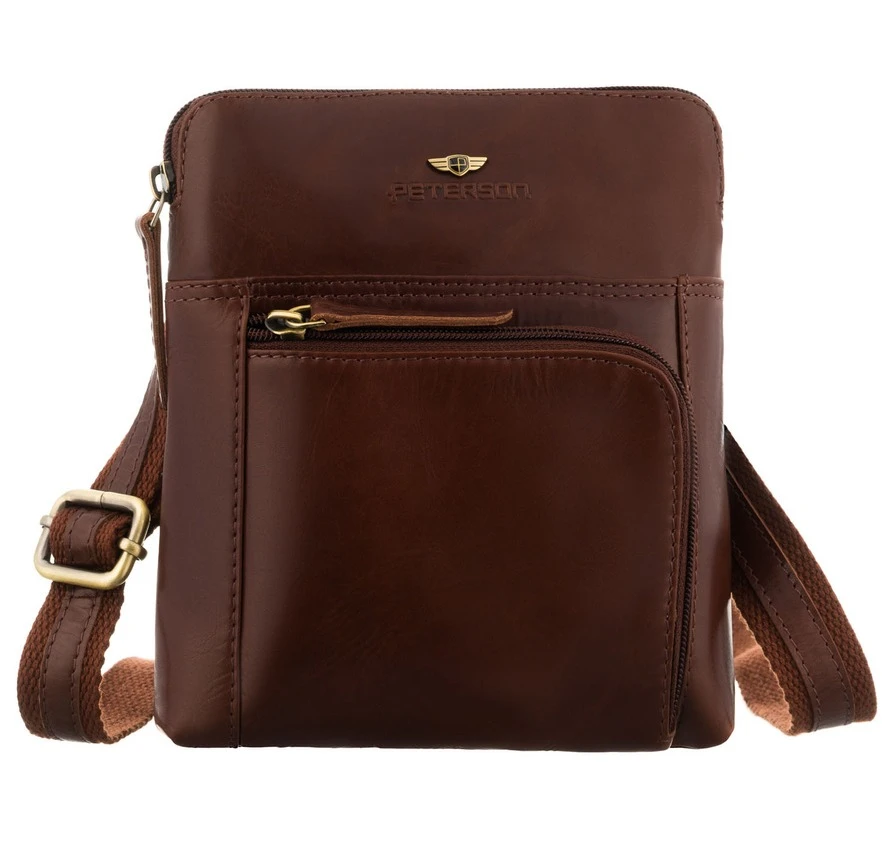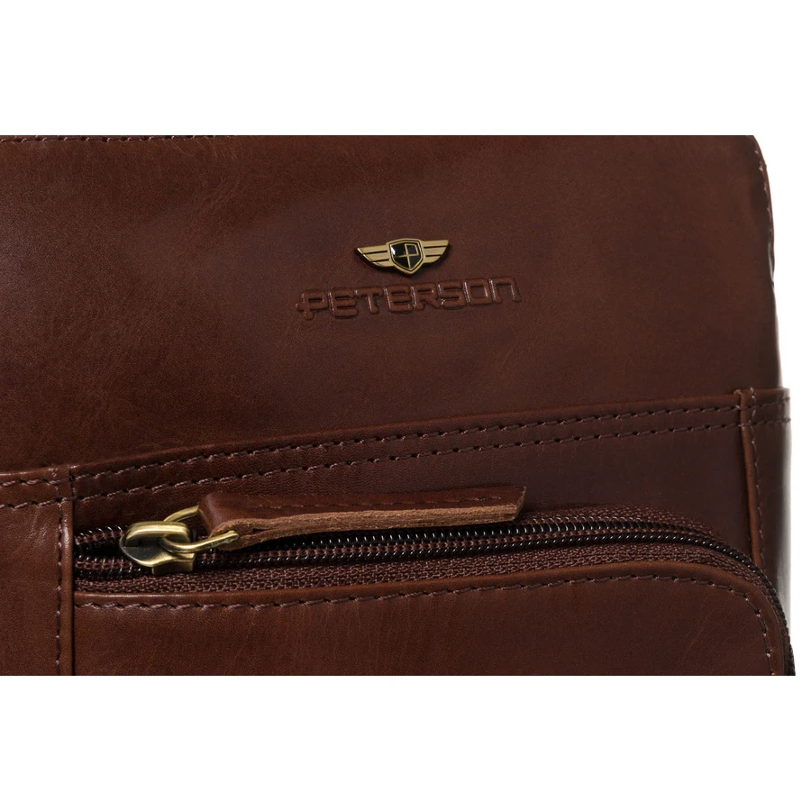 Brązowa, męska listonoszka ze skóry naturalnej zamykana suwakiem - Peterson