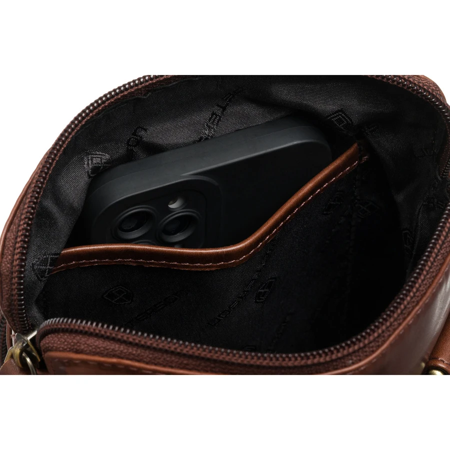 - Choć saszetka wygląda na niewielką, zaskakuje pojemnością. Posiada główną komorę oraz 3 funkcjonalne kieszenie, które pomieszczą wszystkie niezbędne rzeczy: telefon, dokumenty, portfel, klucze, długopis.