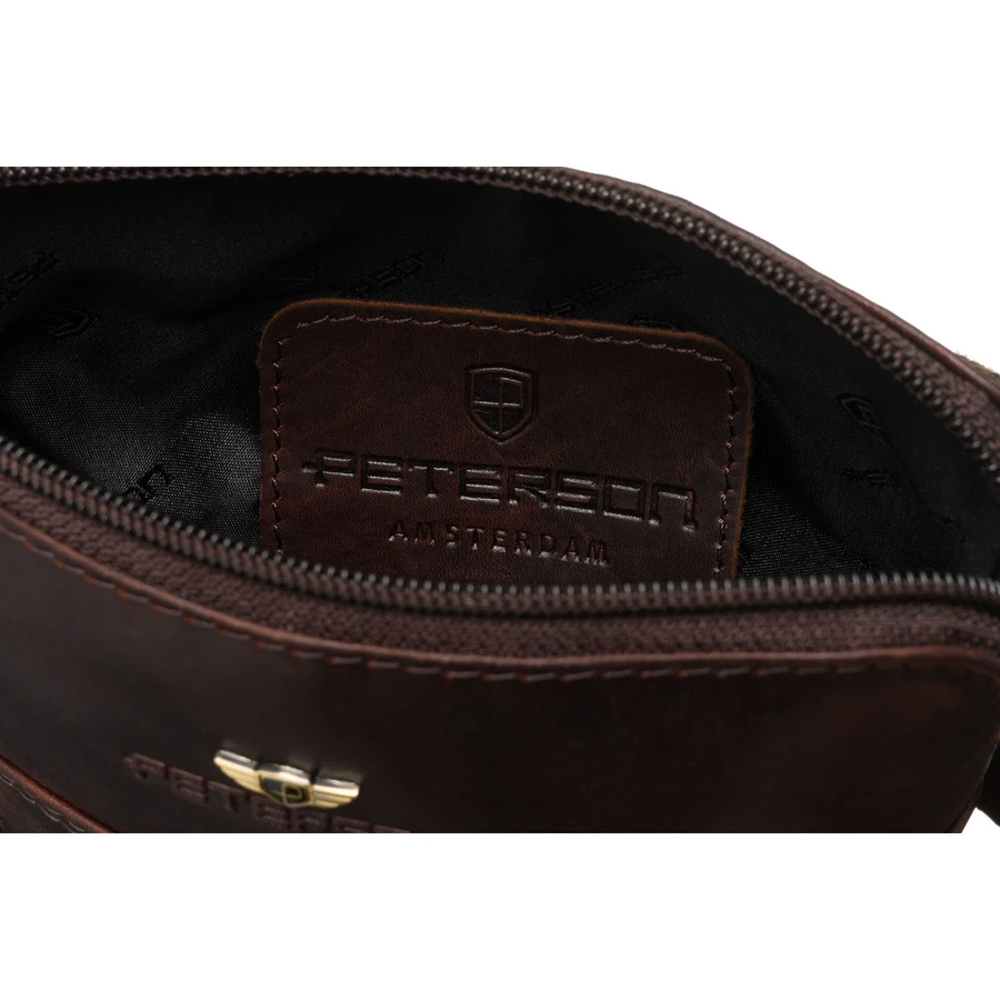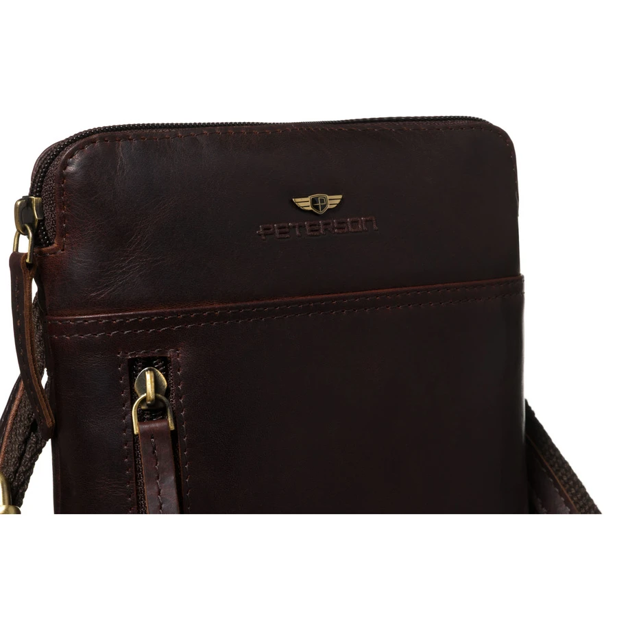 Brązowa listonoszka męska Peterson ze skóry naturalnej to elegancka i funkcjonalna saszetka na co dzień. Kompaktowy rozmiar i praktyczne kieszenie pozwalają wygodnie przechowywać telefon, portfel i dokumenty.