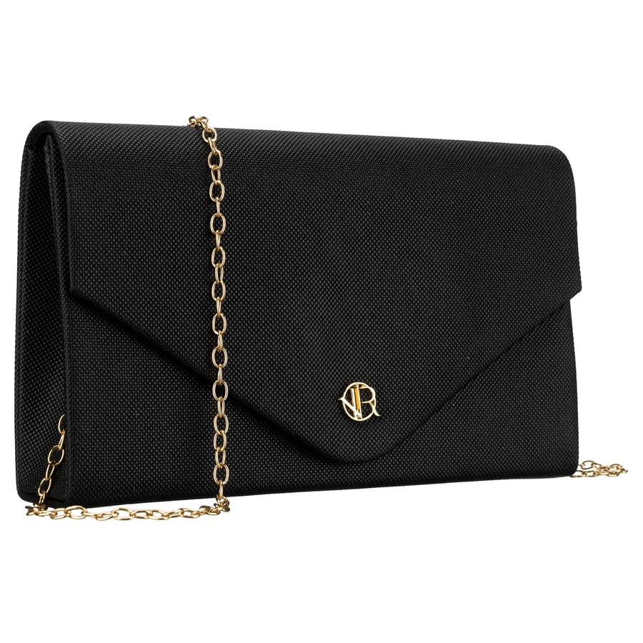 Czarna, brokatowa kopertówka damska wykonana z tkaniny syntetycznej - Rovicky