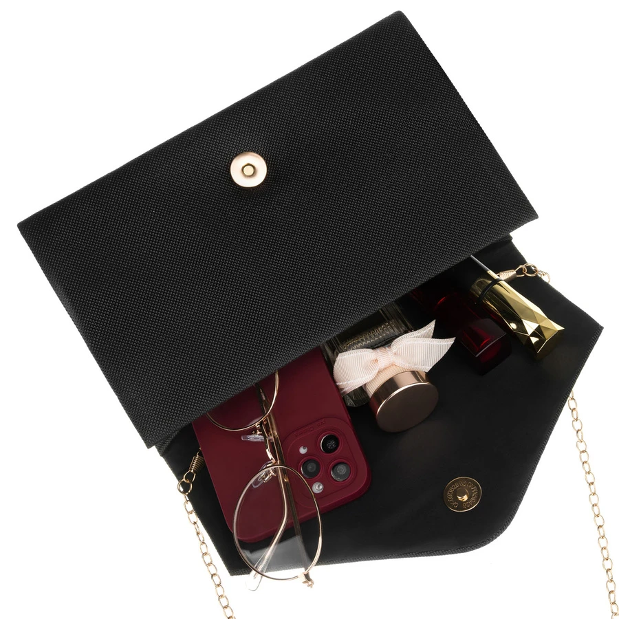 - Kompaktowa i zgrabna - mieści smartfon, pomadkę, drobny portfelik i mini perfumy.