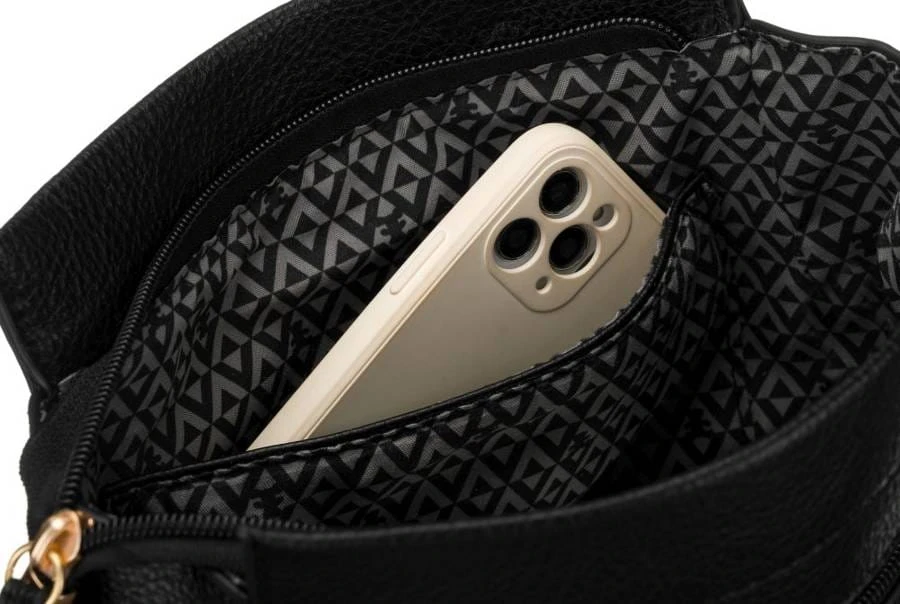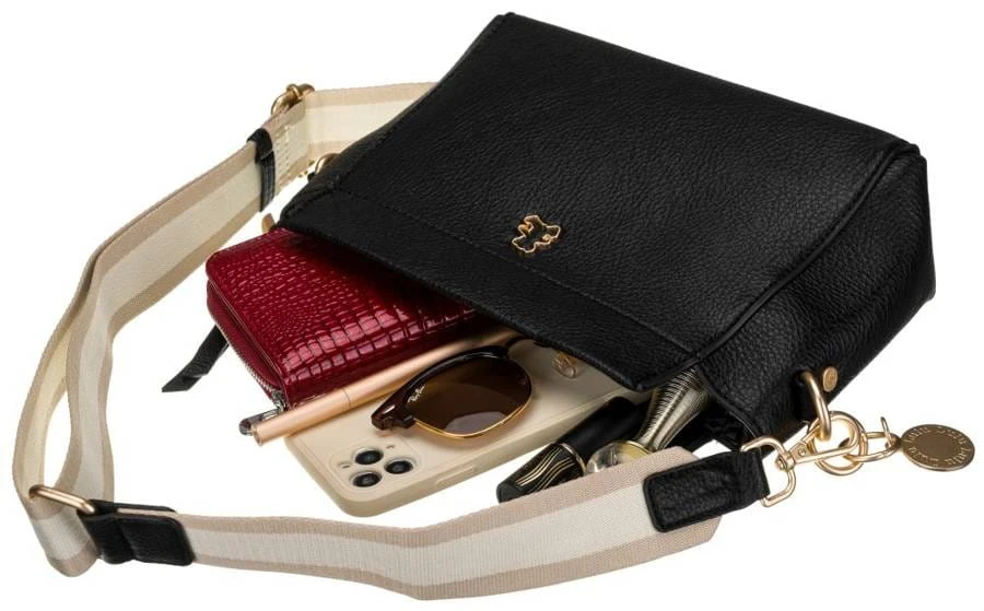 Czarna Listonoszka damska z zawieszką i szerokim paskiem — LuluCastagnette