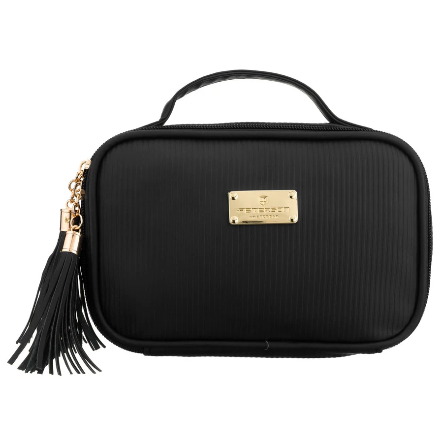 Czarna kosmetyczka z tkaniny syntetycznej wyposażona w cztery przegródki - Peterson