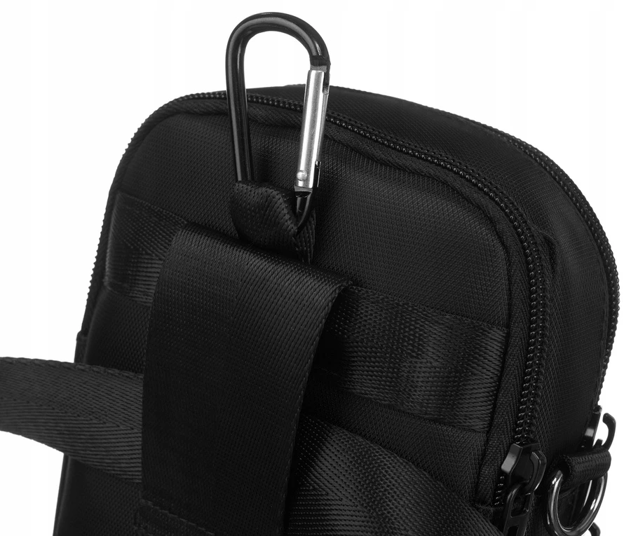 Dodatkowy karabińczyk pozwala przypiąć saszetkę do paska lub plecaka.