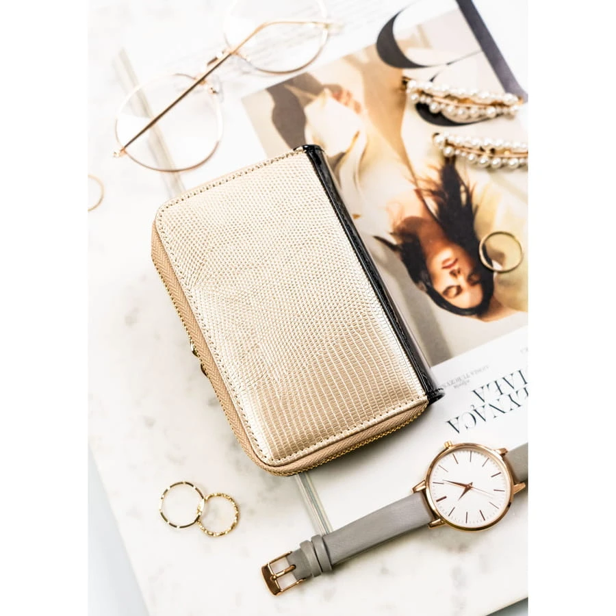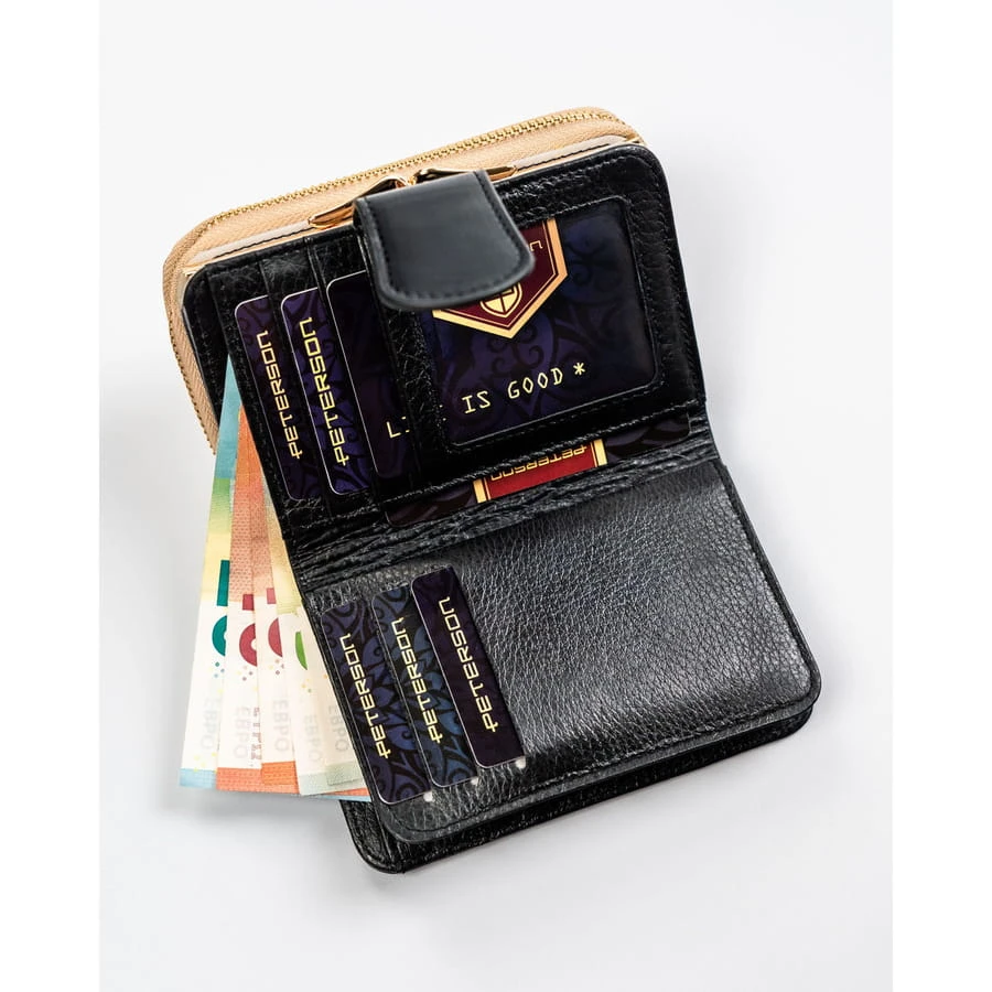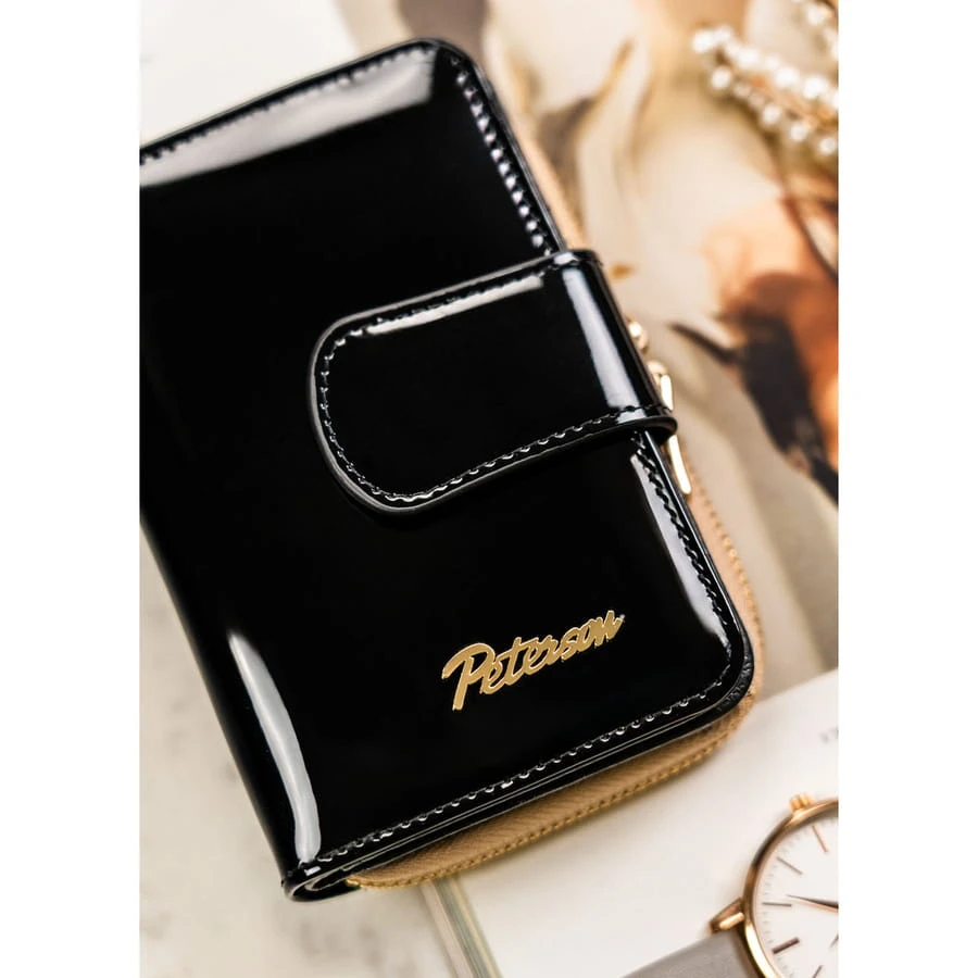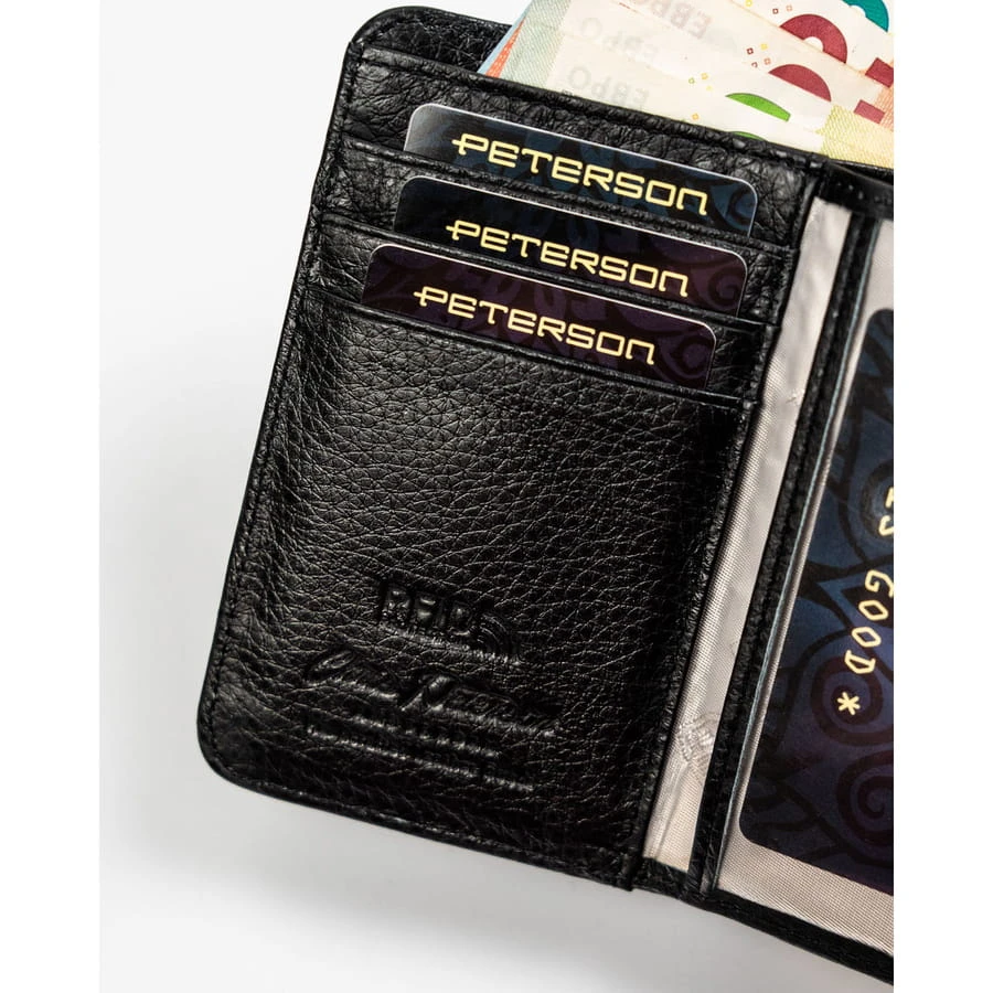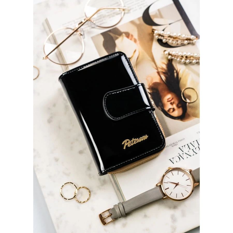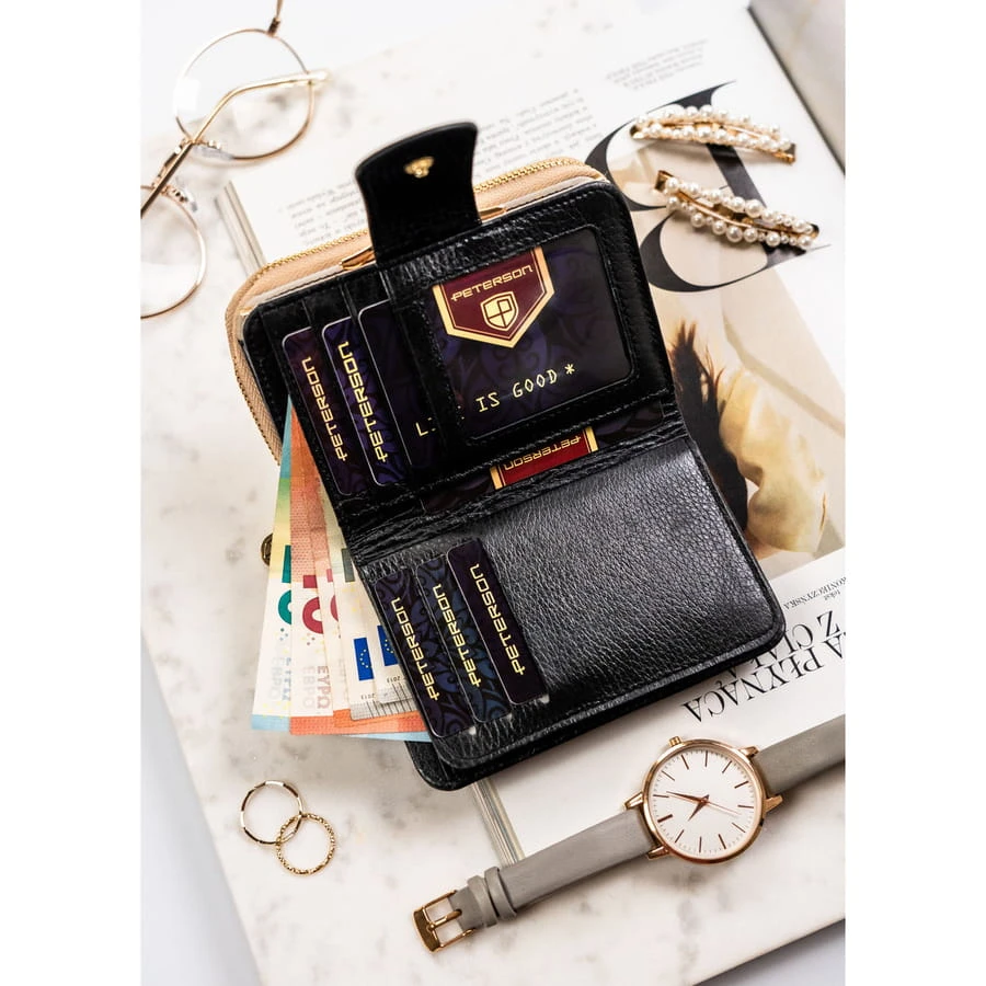 Czarno-złoty, skórzany portfel damski z systemem RFID - Peterson