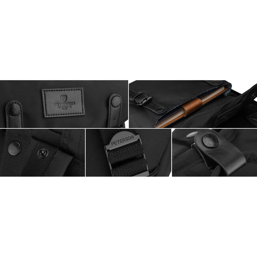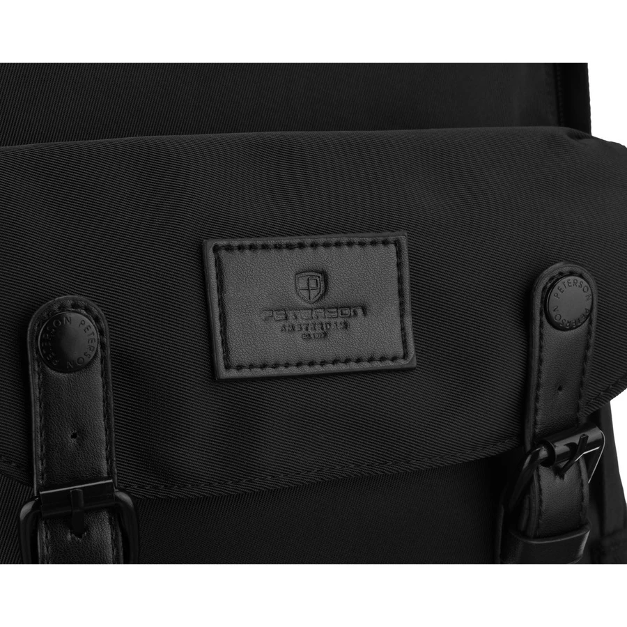 Czarny, duży plecak damski wykonany z poliestru i skóry ekologicznej, zamykany suwakiem - Peterson | Niua.pl