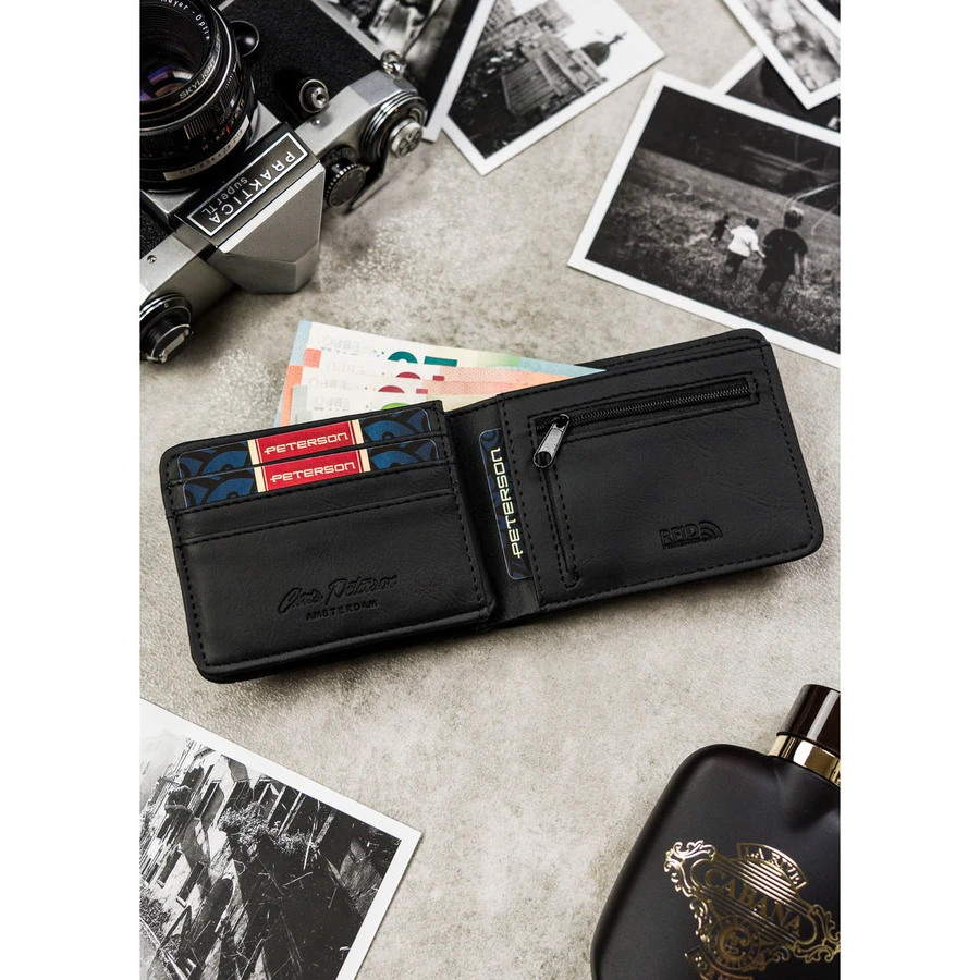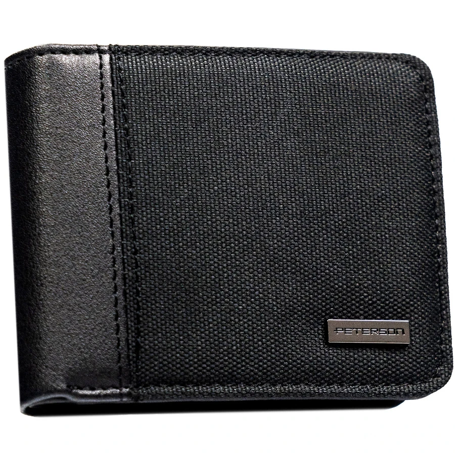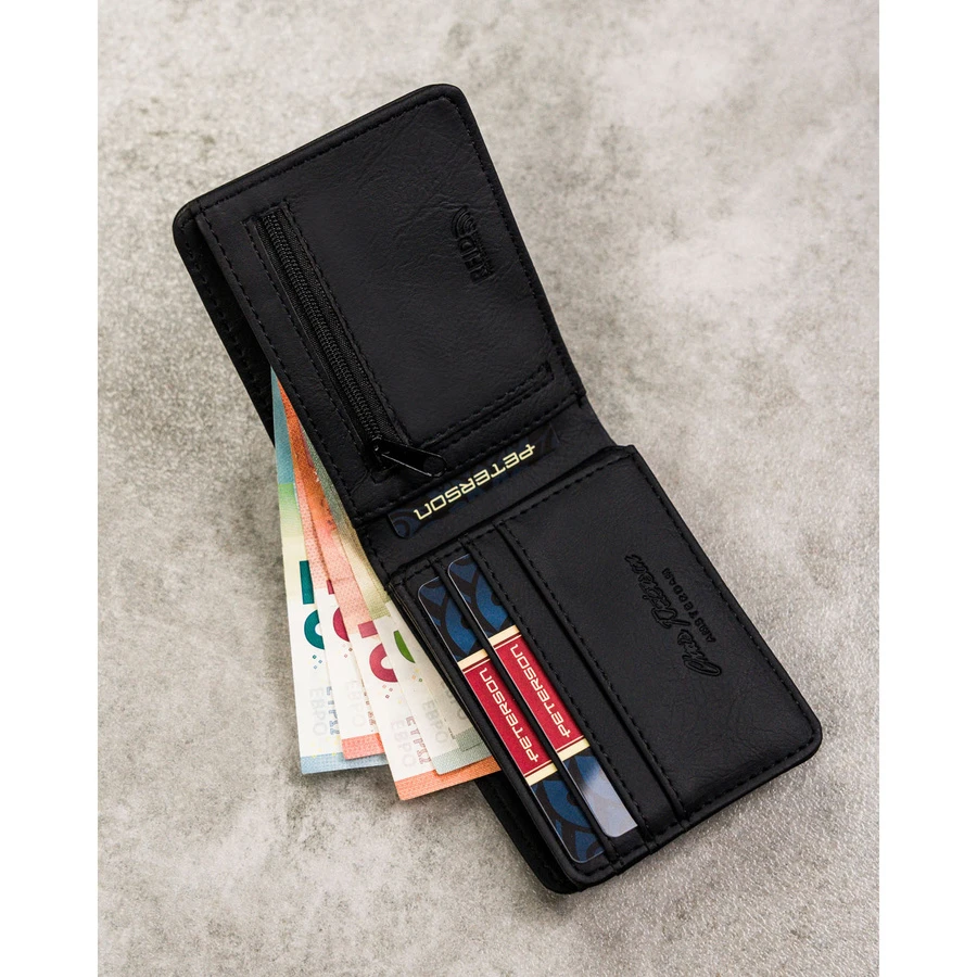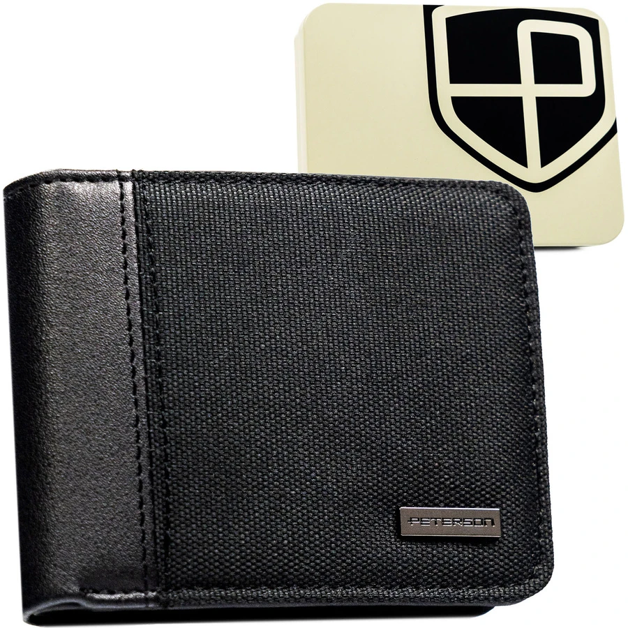 Czarny, kompaktowy portfel męski wykonany ze skóry ekologicznej - Peterson