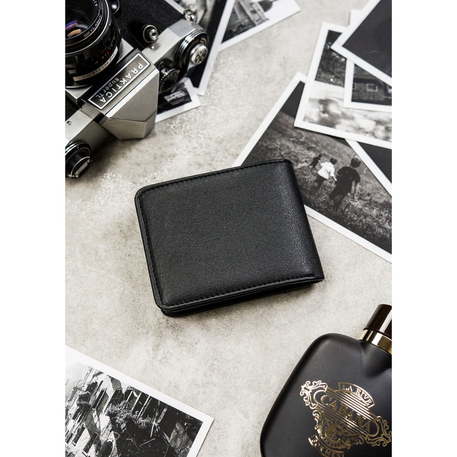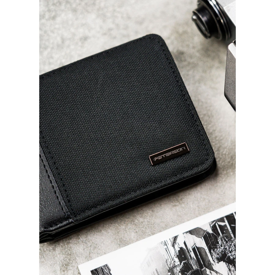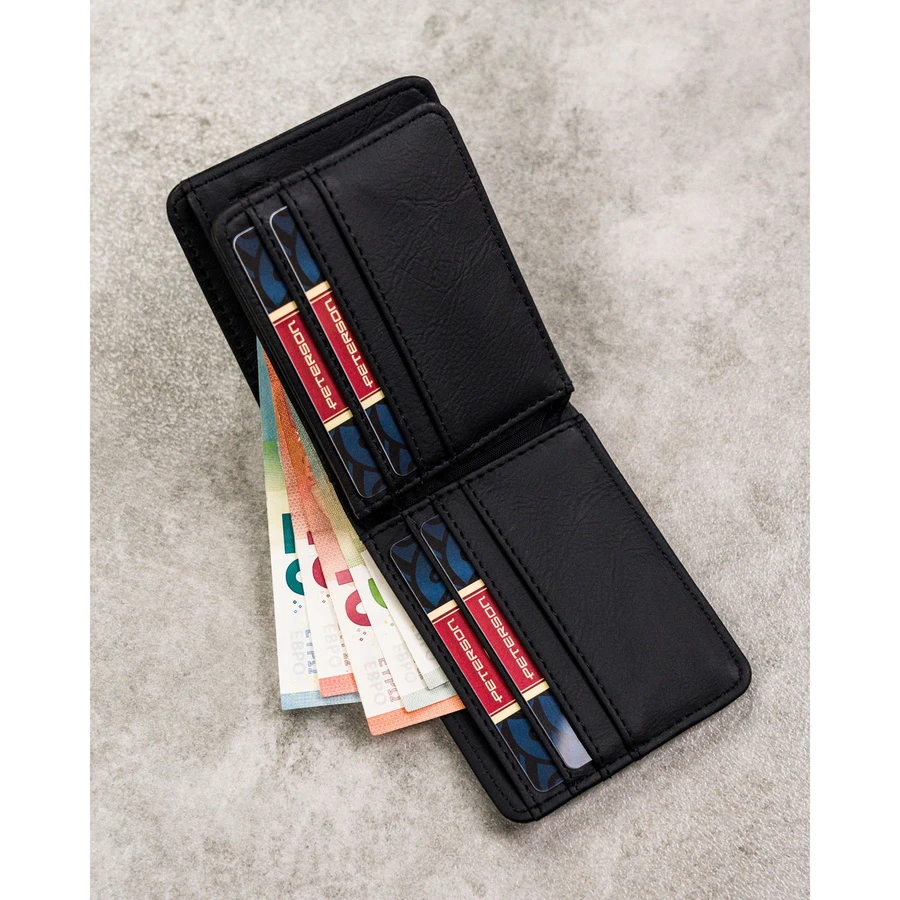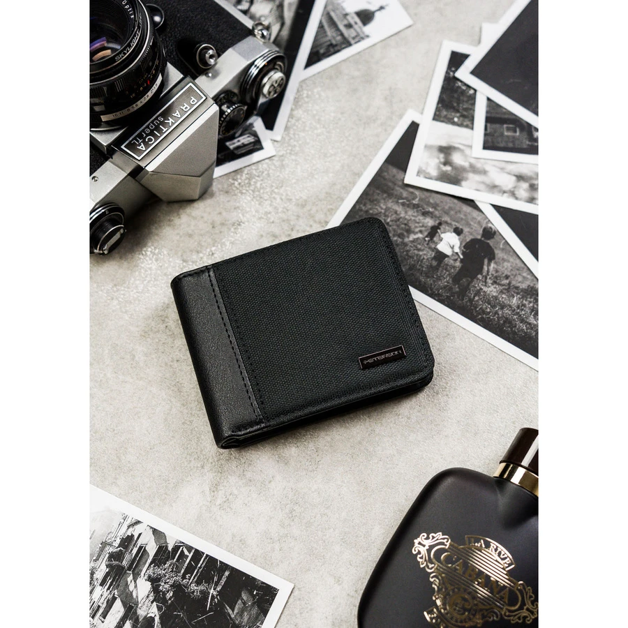 Czarny, kompaktowy portfel męski wykonany ze skóry ekologicznej - Peterson