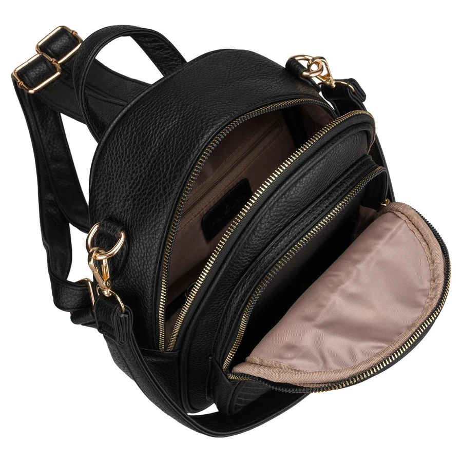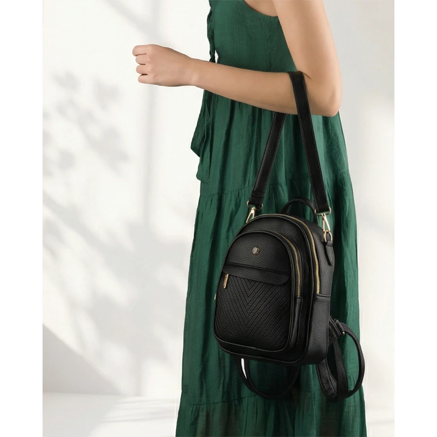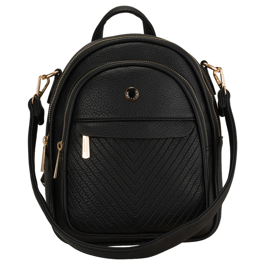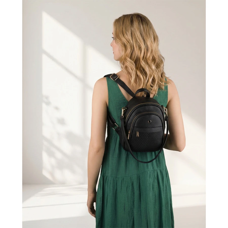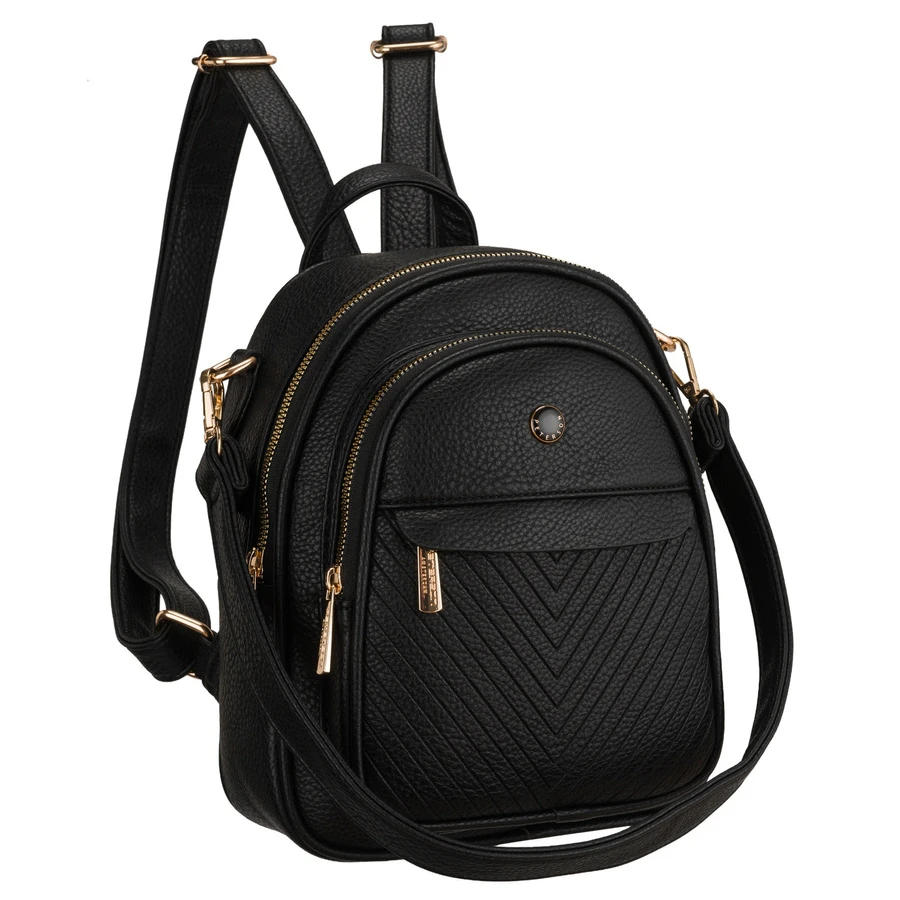 Czarny plecak damski mały ze skóry ekologicznej elegancki uchwyt na ramię torebka 2w1 - Peterson