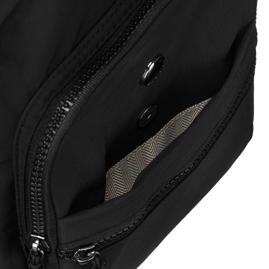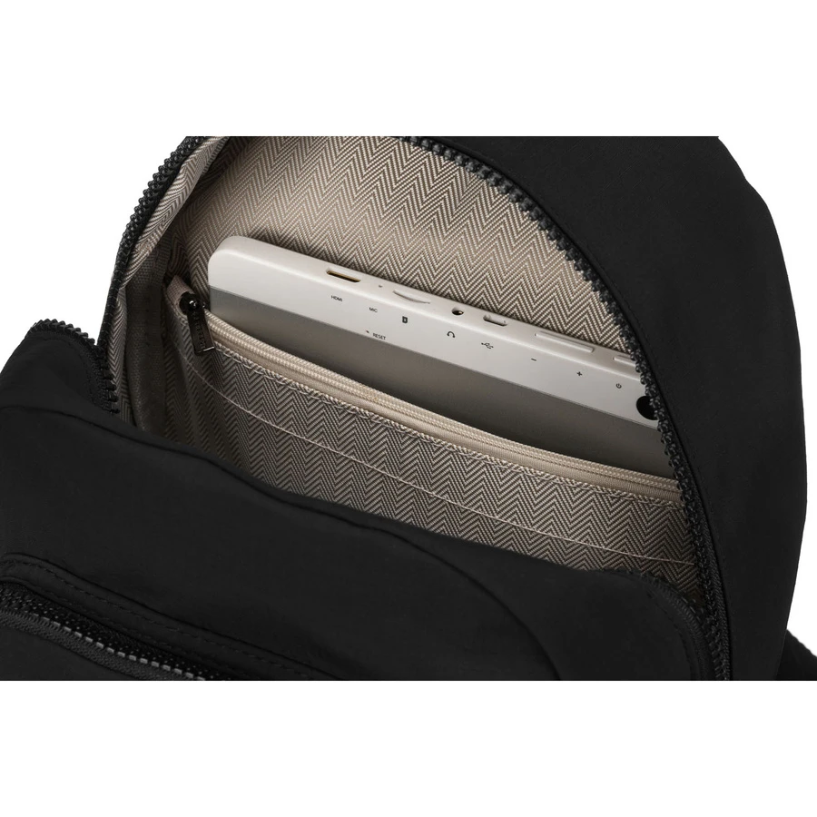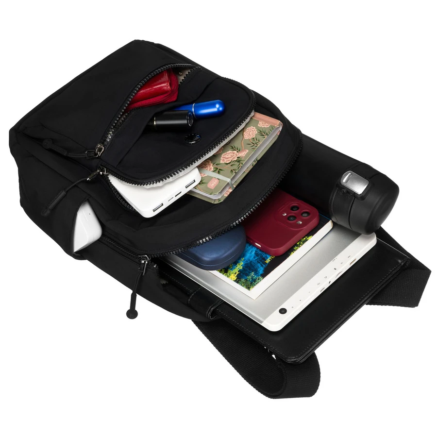 Główna komora z przegrodą i kieszenią na suwak pozwala na wygodne przechowywanie rzeczy. Dodatkowe kieszenie wewnętrzne i zewnętrzne umożliwiają szybki dostęp do telefonu, portfela czy kluczy.