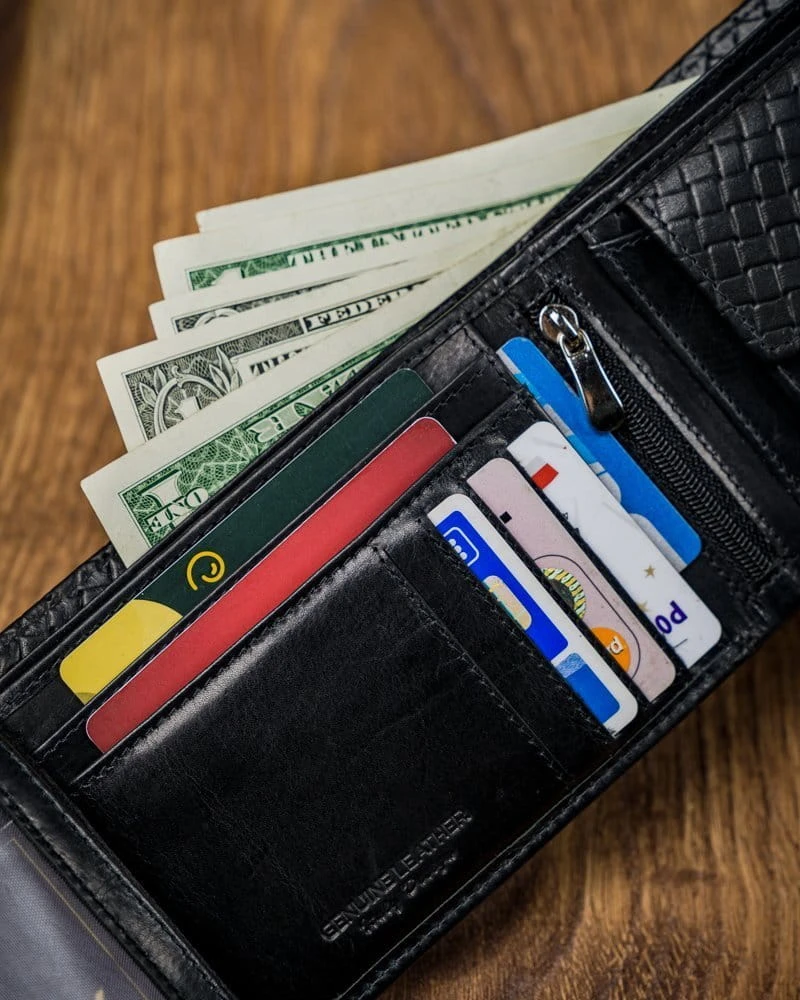 - 1 schowek zamykany na suwak w centralnej części portfela.