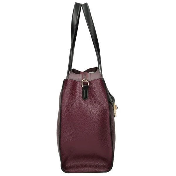 Torebka została wykonana z wysokiej jakości skóry ekologicznej, która jest trwała, estetyczna i łatwa w pielęgnacji. Charakteru dodaje czerwony panel przedni, kontrastujące czarne rączki, firmowe logo NOBO oraz złote okucia, podkreślające elegancki styl modelu.