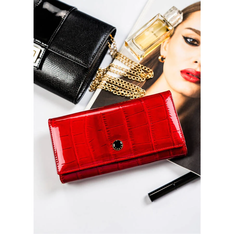 Czerwony portfel damski Peterson ze skóry naturalnej i lakierowanej – poziomy, z zatrzaskiem i ochroną RFID | niua.pl