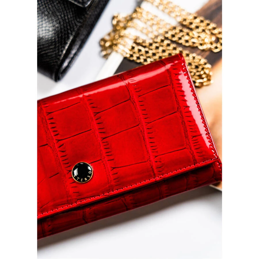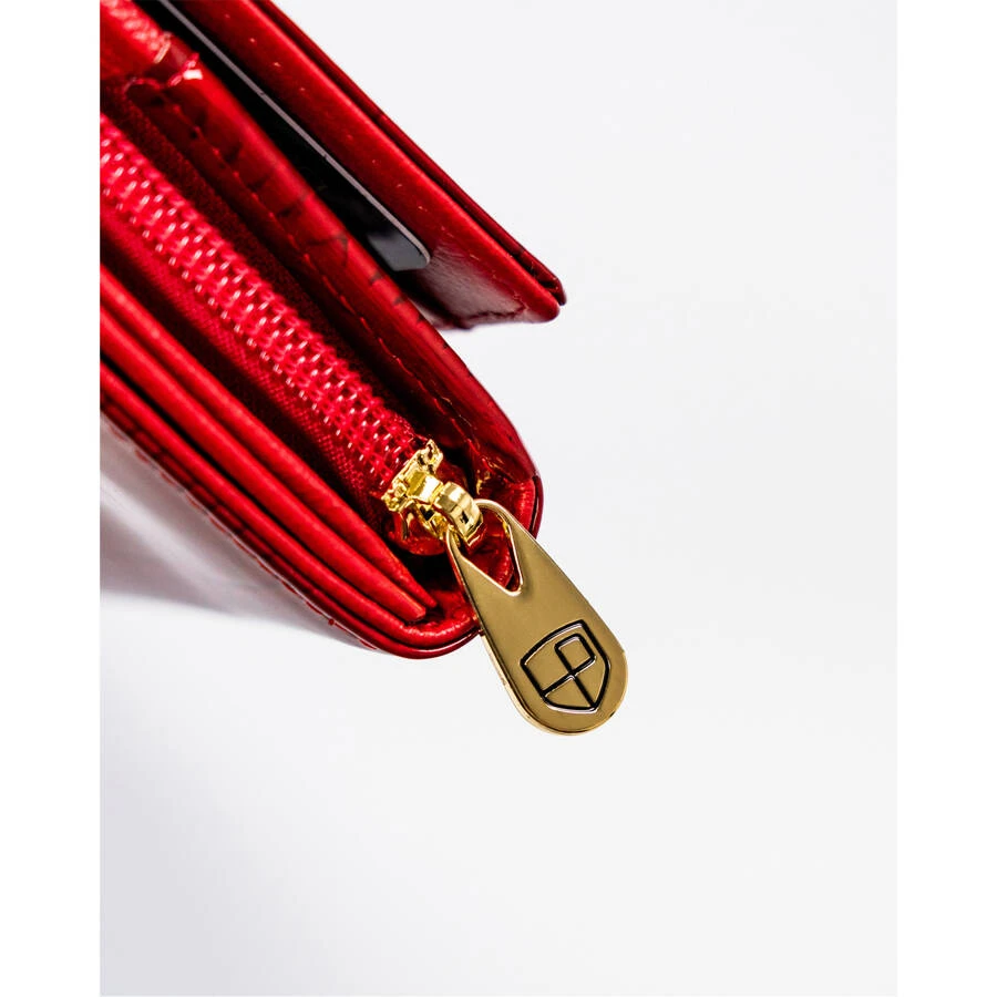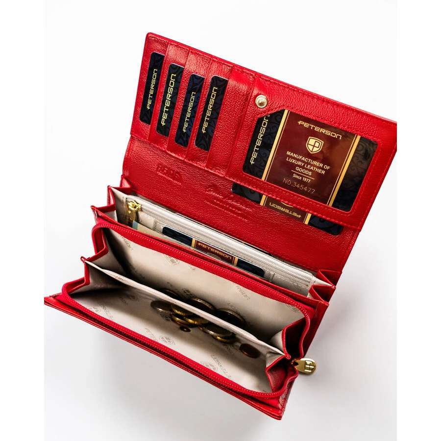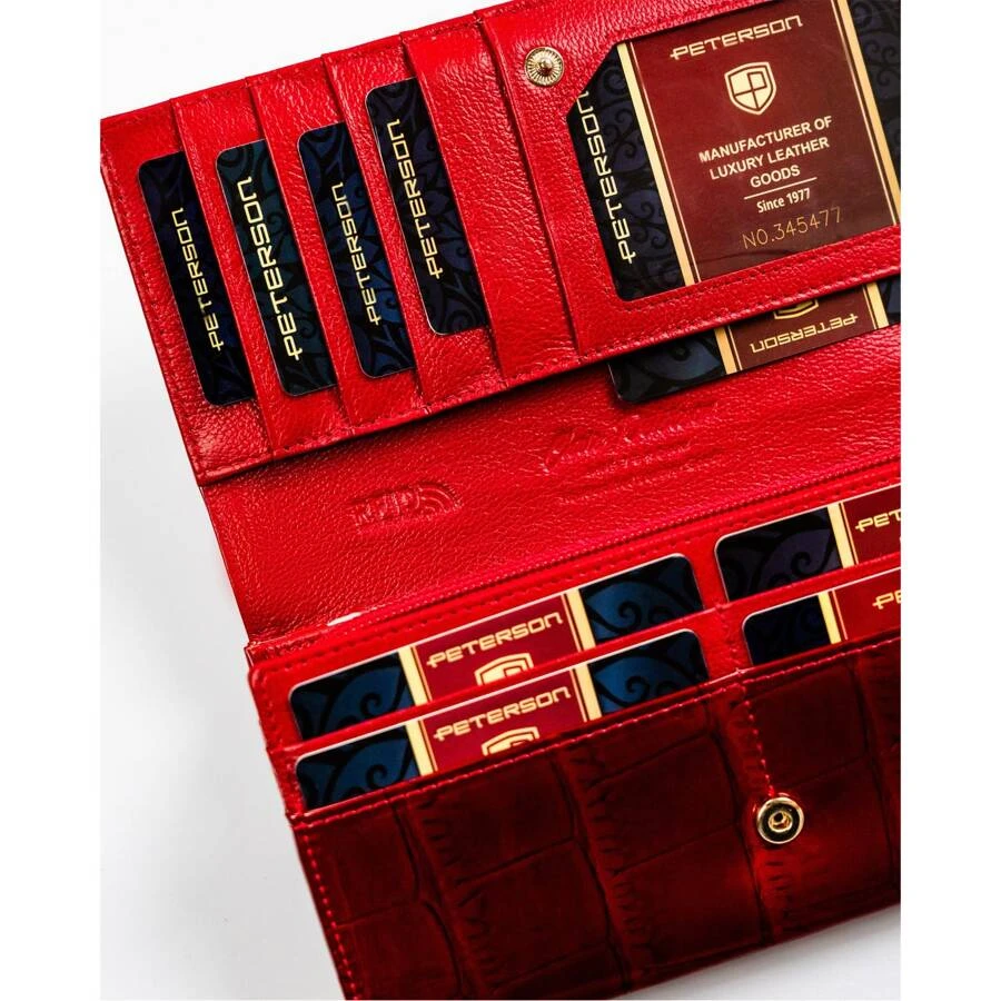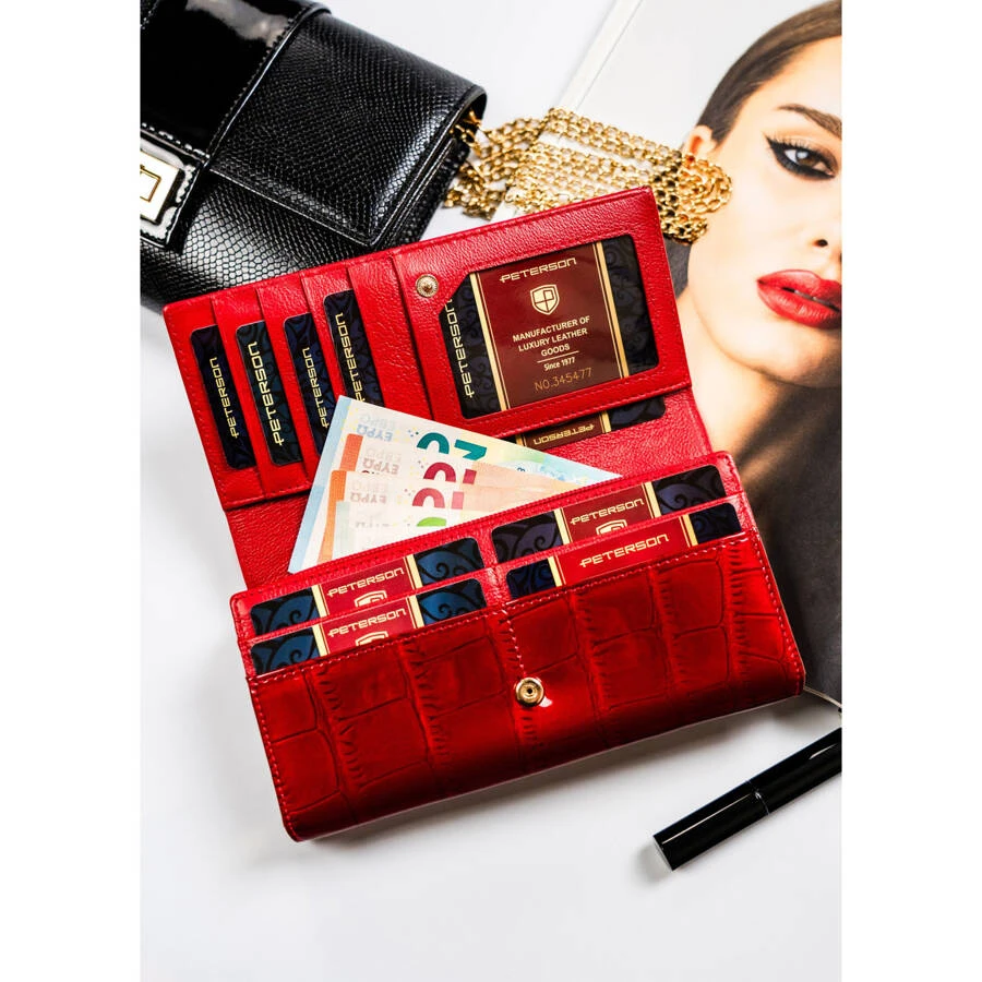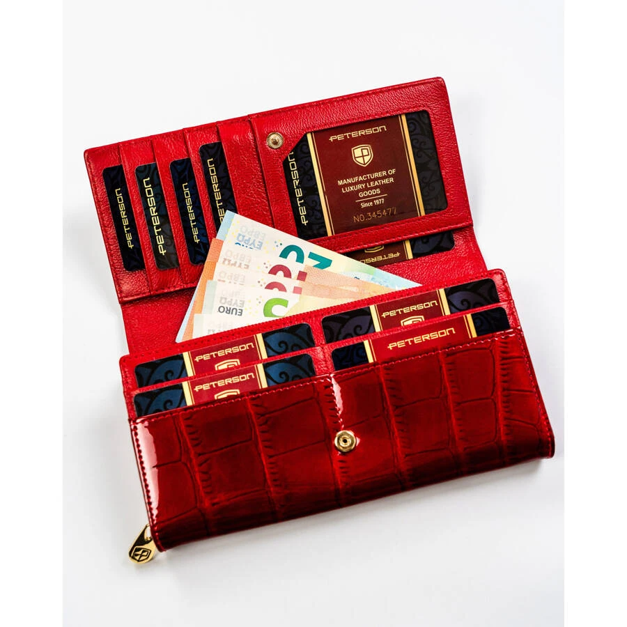 Czerwony portfel damski Peterson ze skóry naturalnej i lakierowanej z ochroną RFID