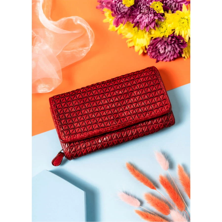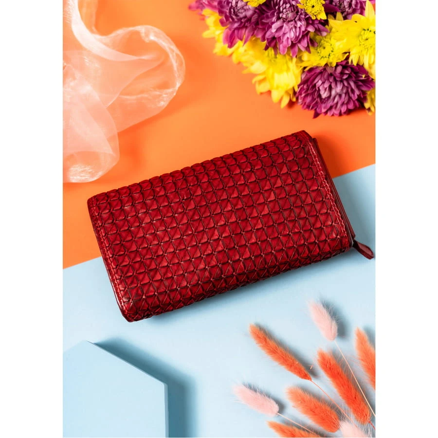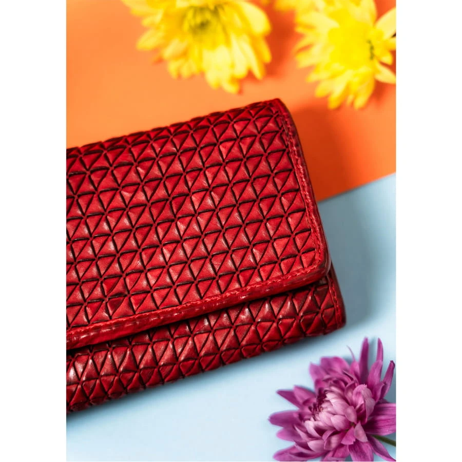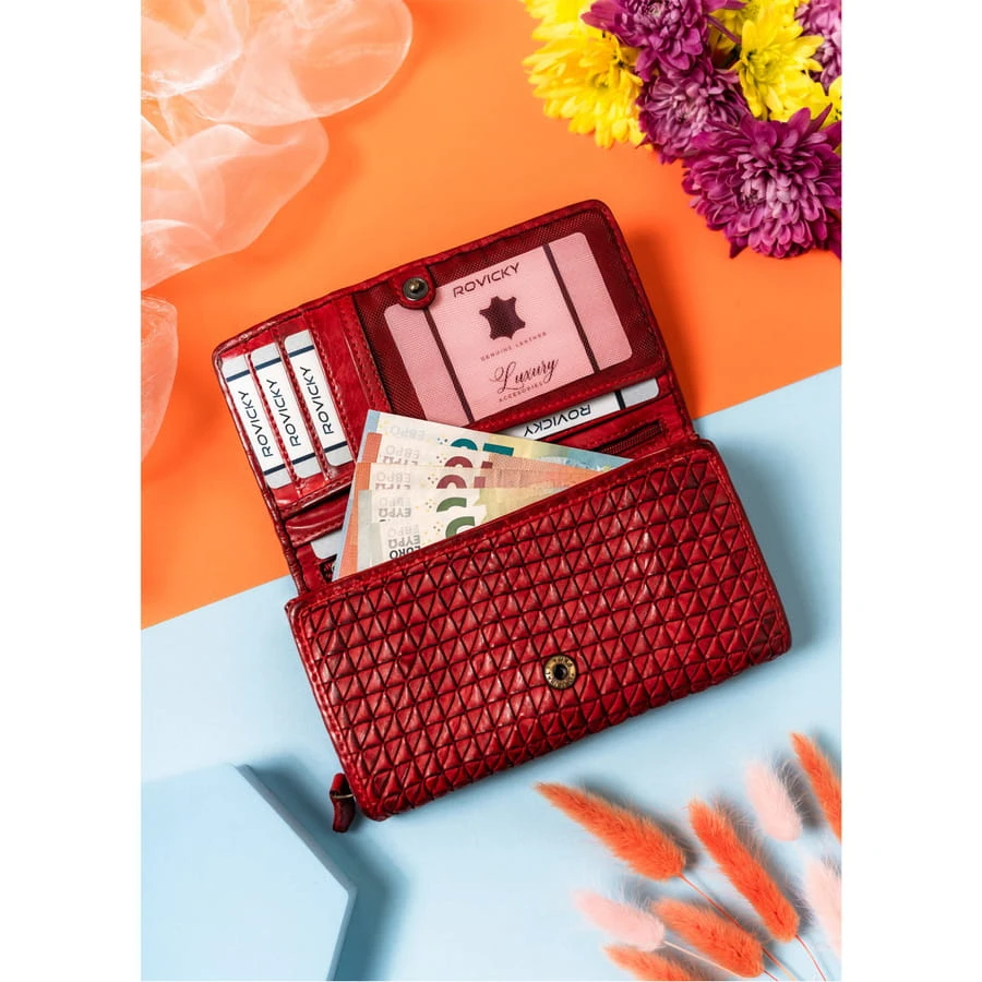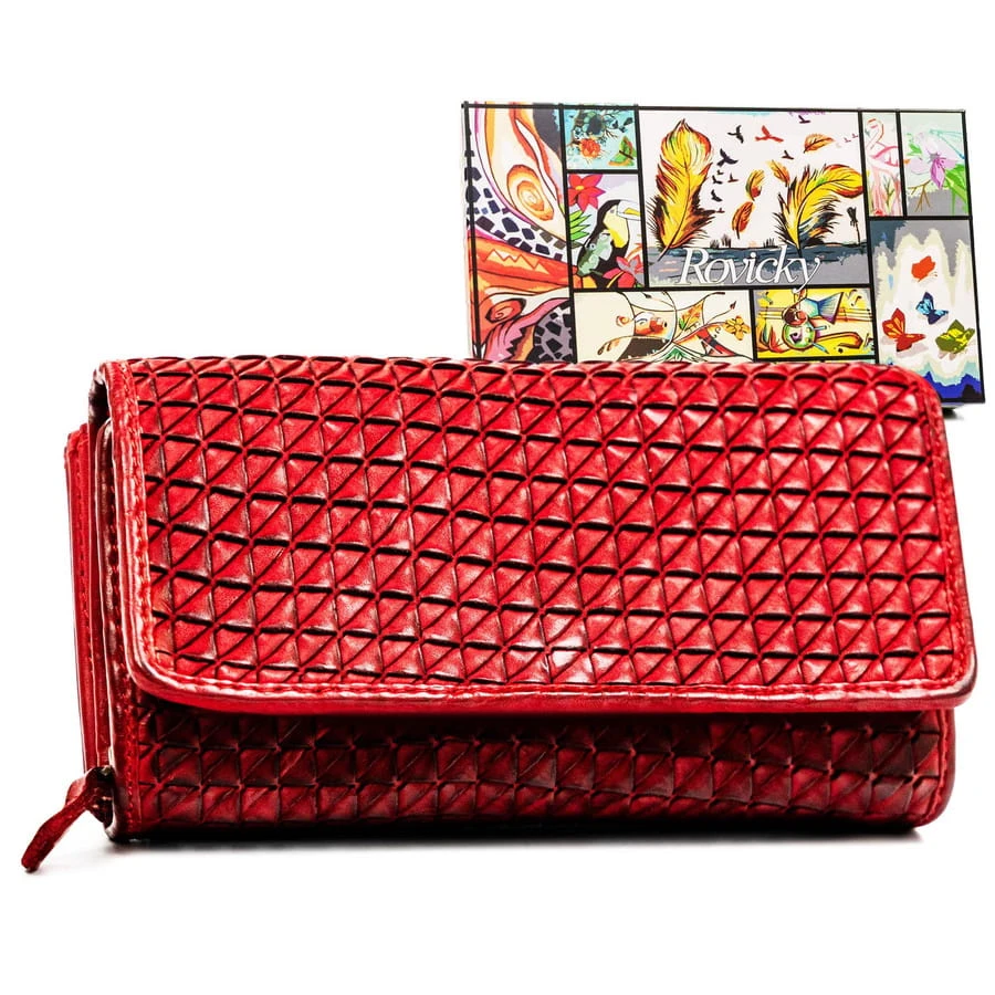 Czerwony portfel damski z tłoczeniem geometrycznym - Rovicky