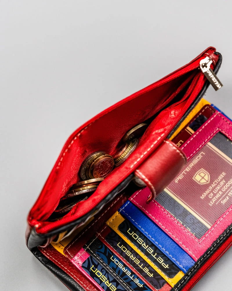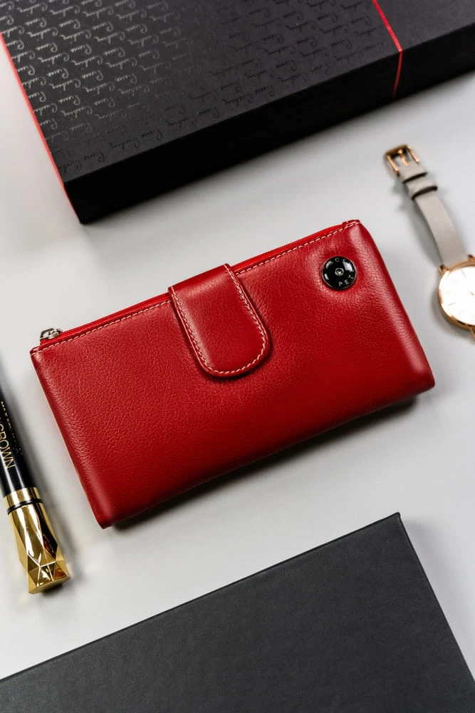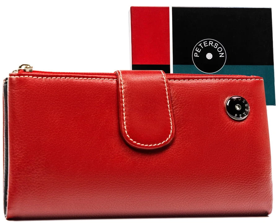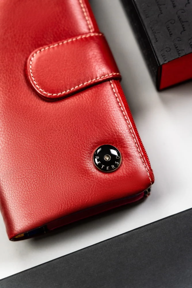 Czerwony portfel skórzany damski z modnym twistem - Peterson