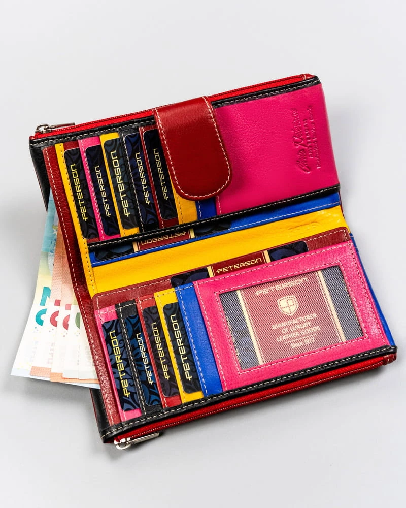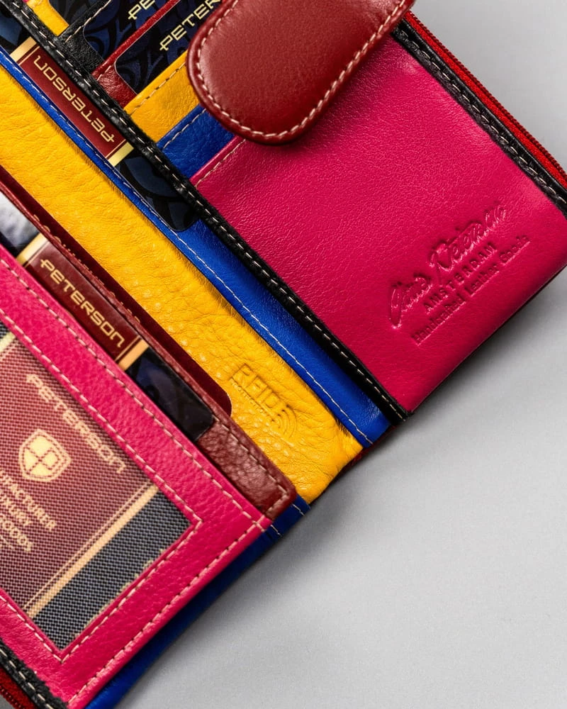 Całość dopełniają solidne metalowe okucia oraz okrągłe logo Peterson® na froncie portfela, podkreślające wyjątkowy design.