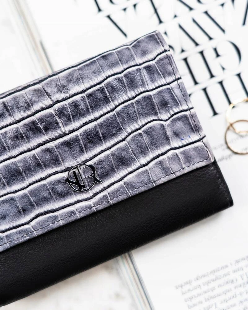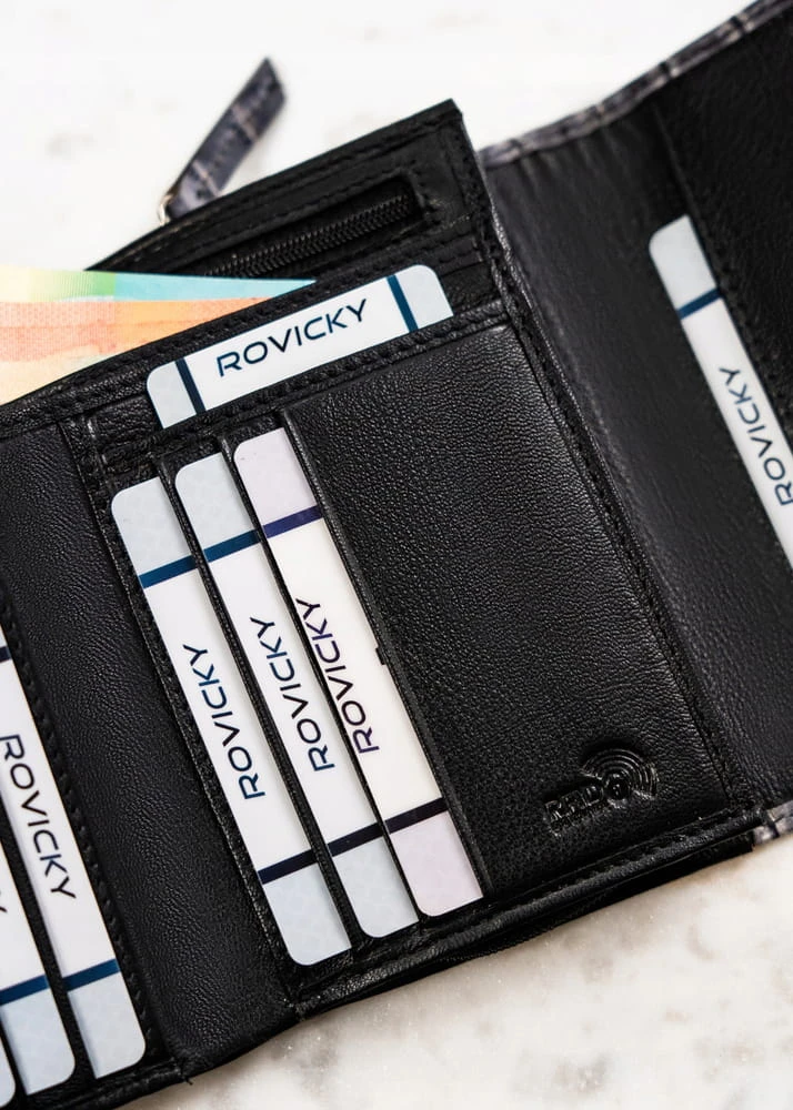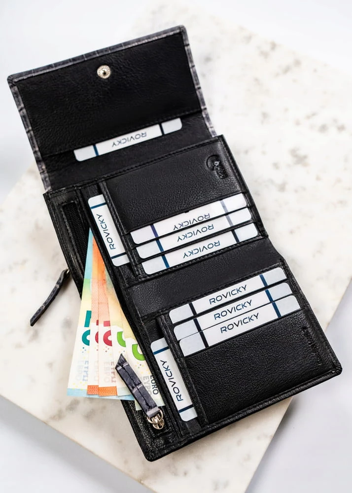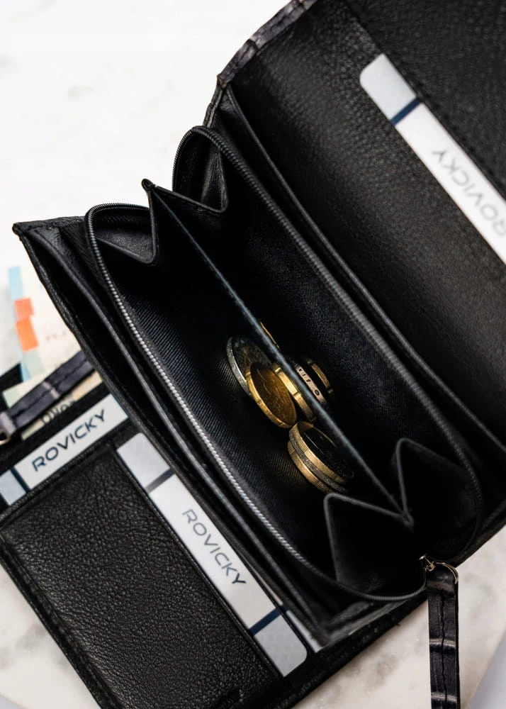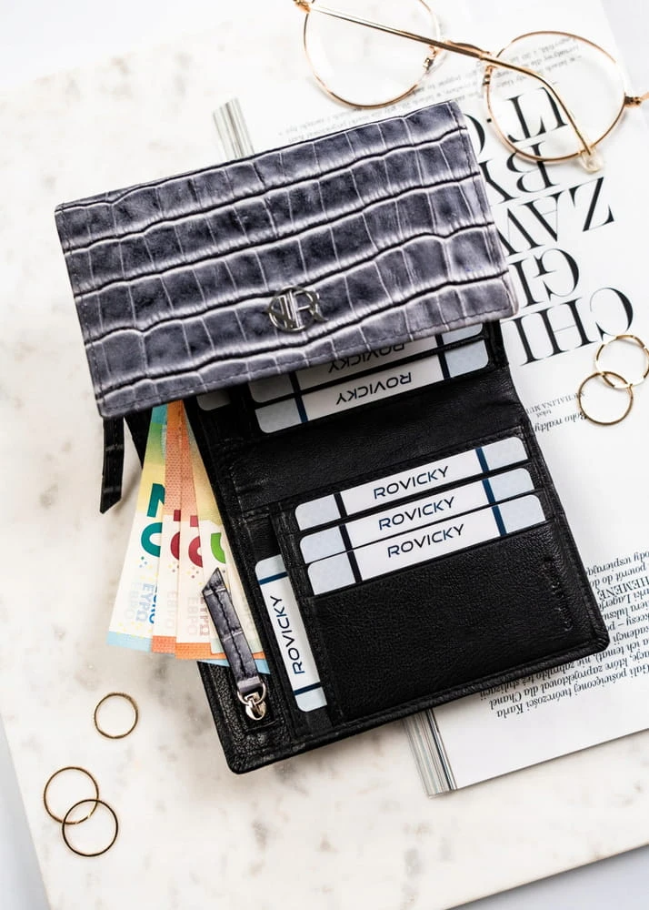 Damski portfel ze skóry naturalnej na zatrzask - Rovicky