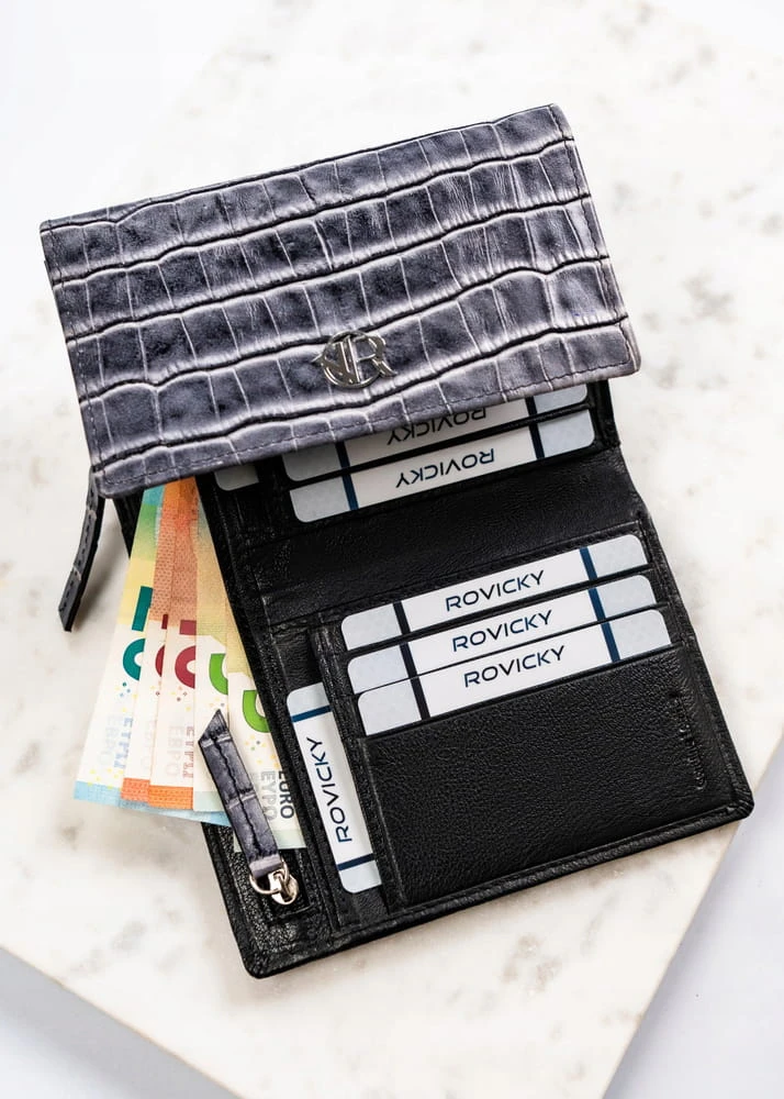 Podwójne sekcje będą doskonałym rozwiązaniem do przechowywania różnych walut, które można trzymać w oddzielnych kieszonkach.