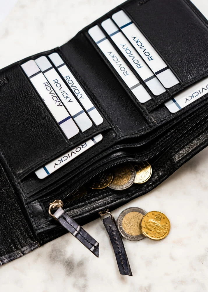 Portfel został zaprojektowany z myślą o zaspokojeniu wymagań zarówno zwolenników płatności elektronicznych, jak i osób ceniących tradycyjne metody. W środku znajduje się duża, podwójna kieszeń na bilon. Dzięki zamknięciu na zamek błyskawiczny kieszeń zapewnia bezpieczeństwo Twoich monet.
