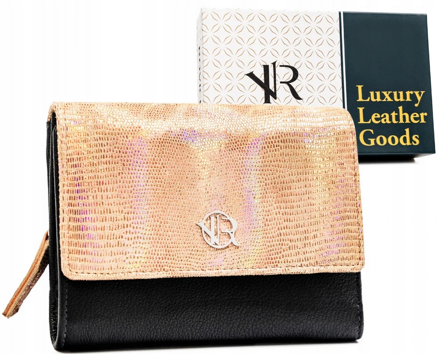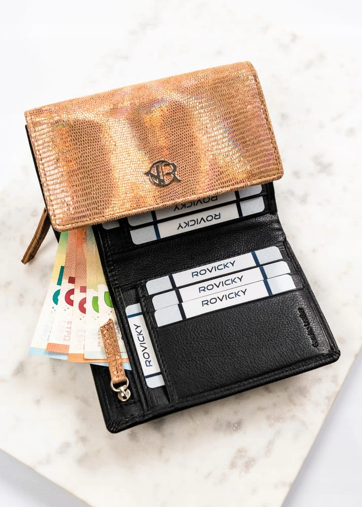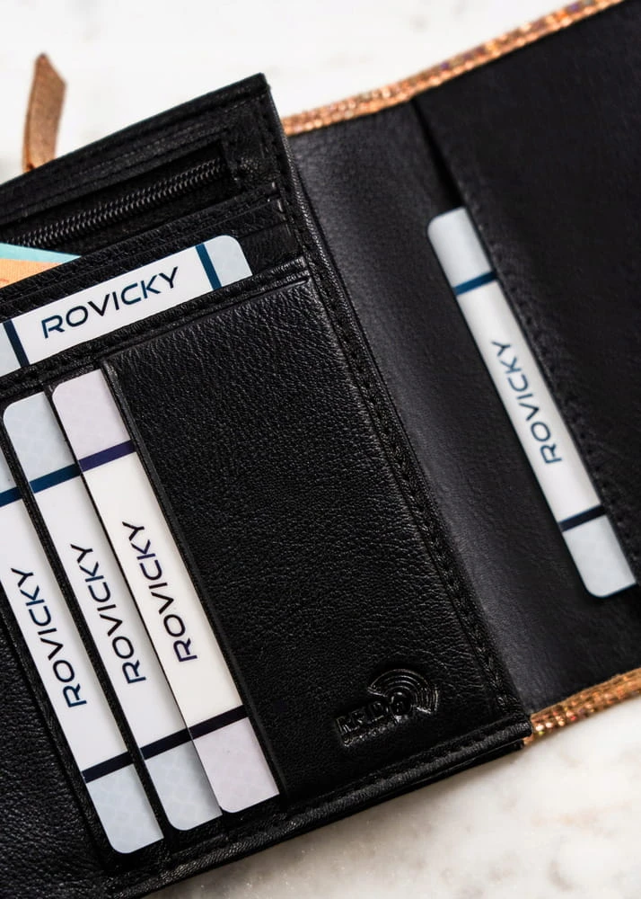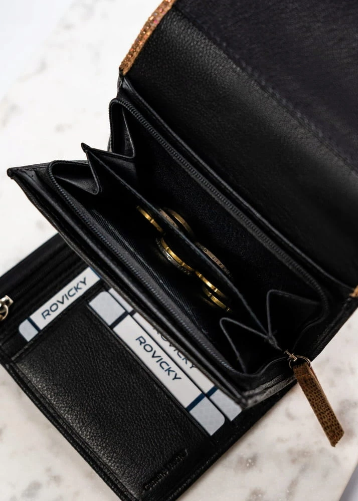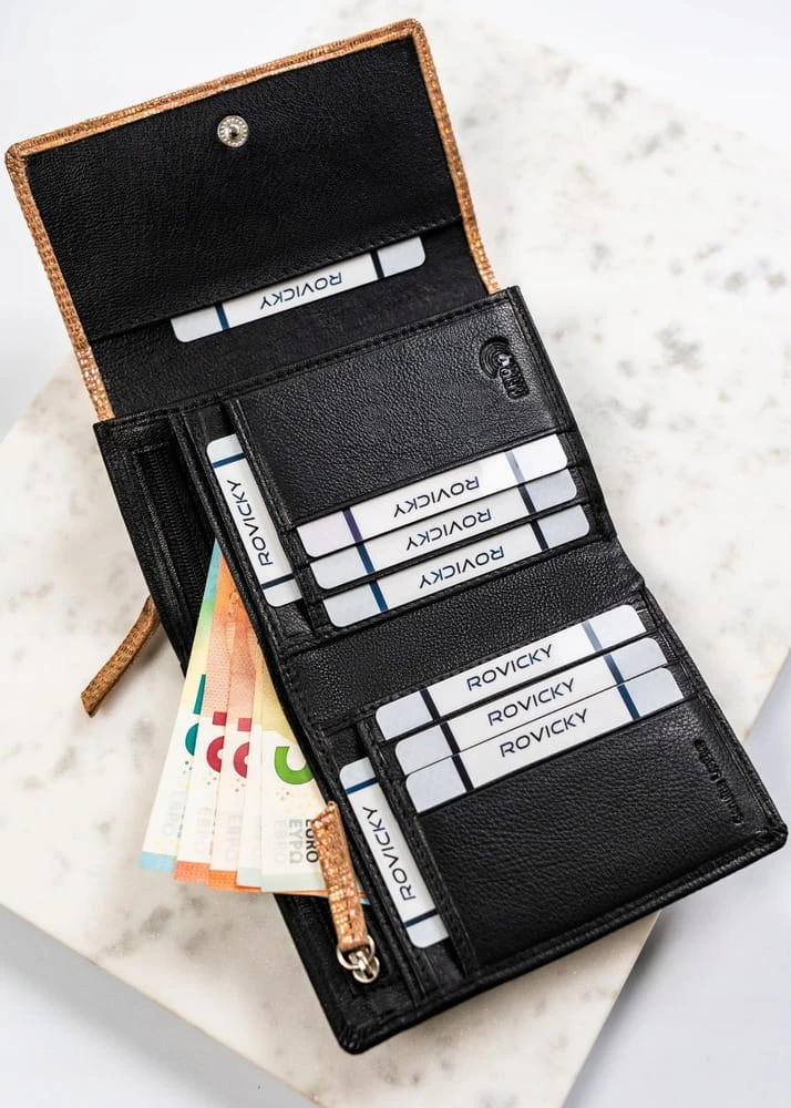 Damski portfel ze skóry naturalnej na zatrzask - Rovicky