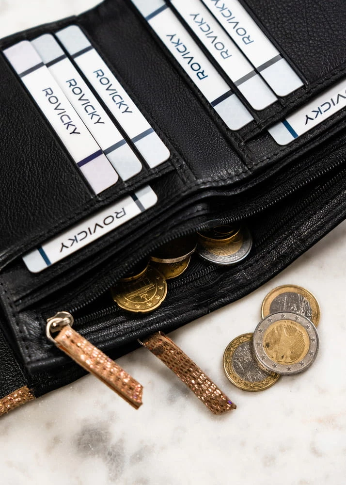 Podwójne sekcje będą doskonałym rozwiązaniem do przechowywania różnych walut, które można trzymać w oddzielnych kieszonkach.