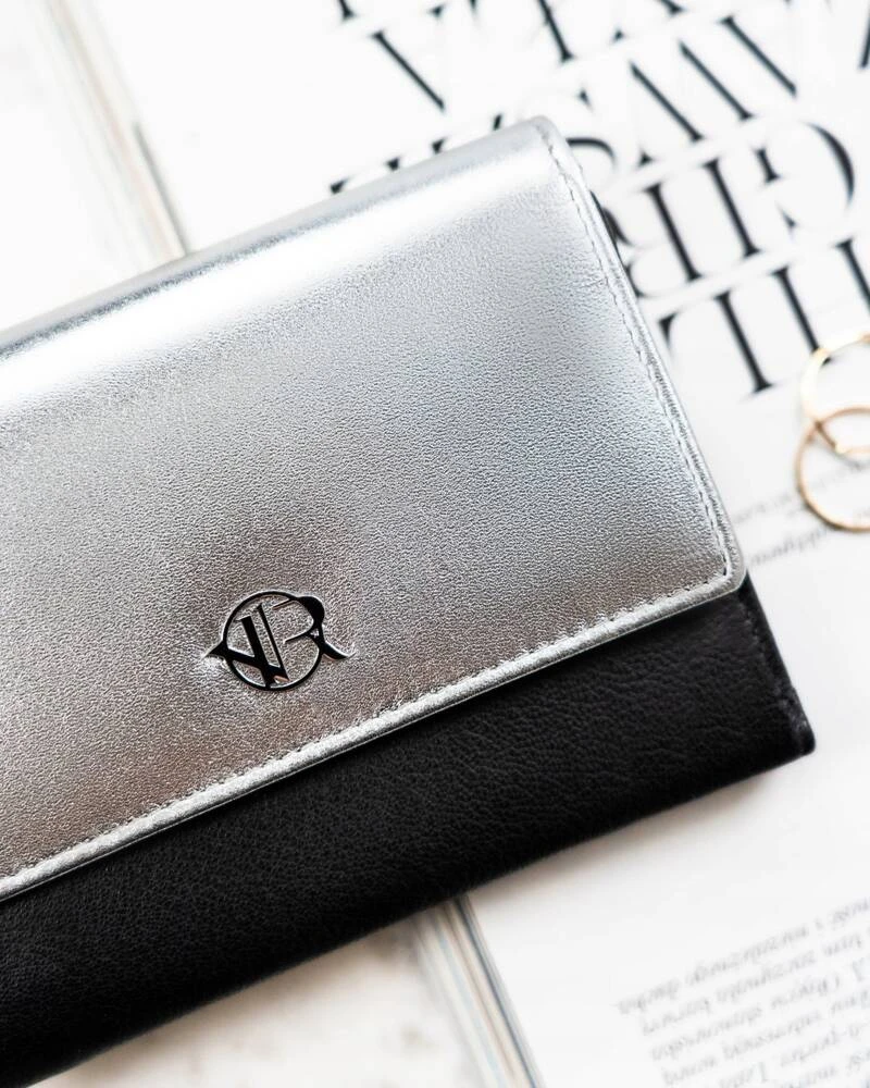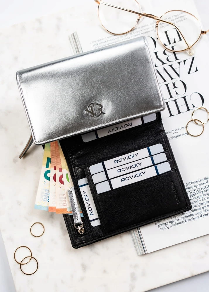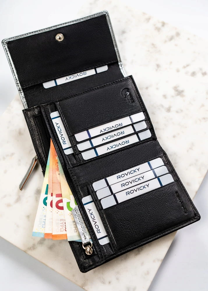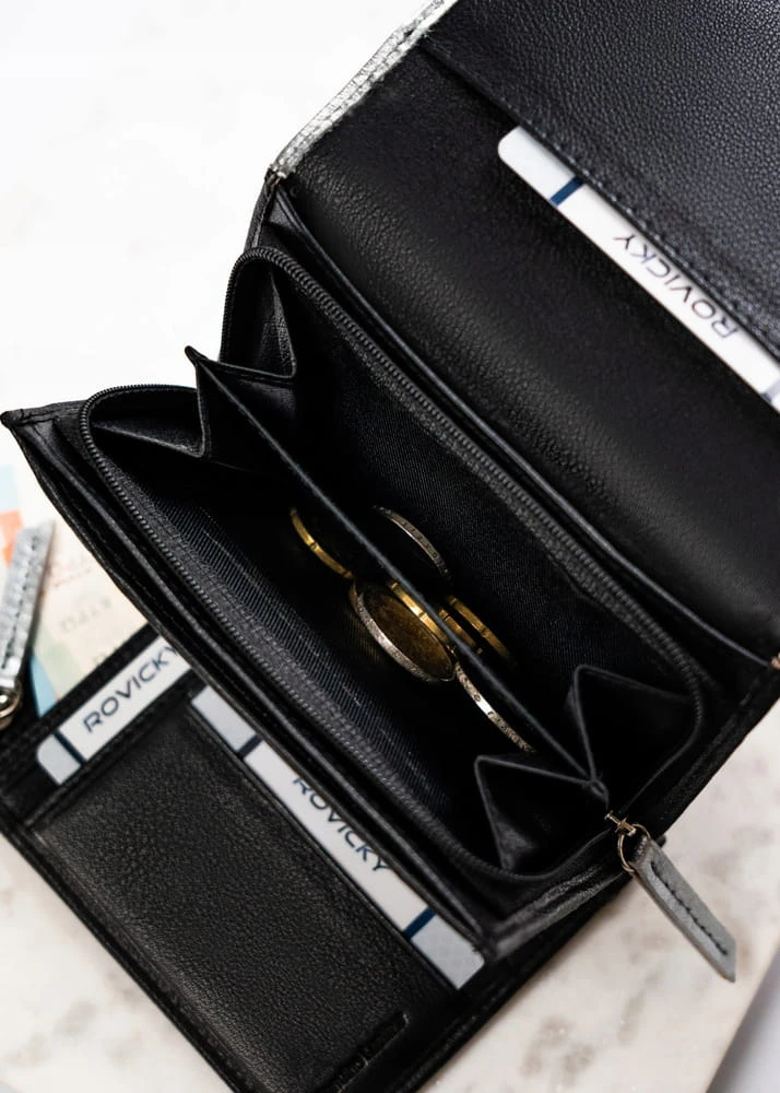 Damski portfel ze skóry naturalnej na zatrzask - Rovicky