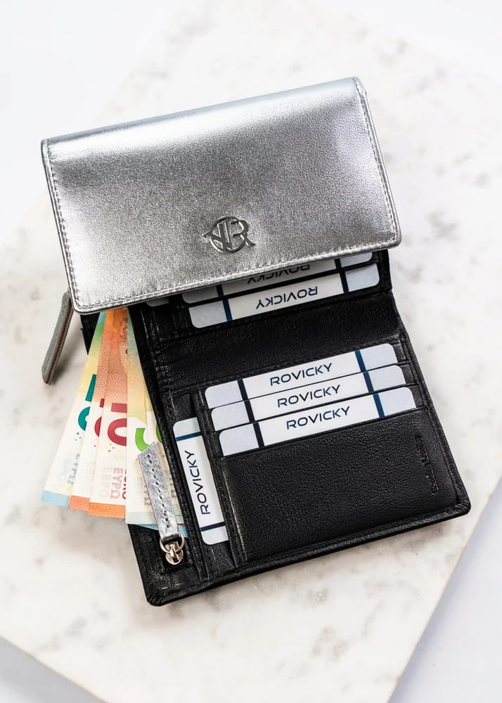 Podwójne sekcje będą doskonałym rozwiązaniem do przechowywania różnych walut, które można trzymać w oddzielnych kieszonkach.