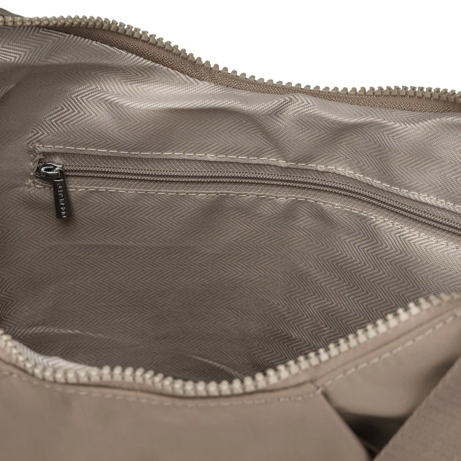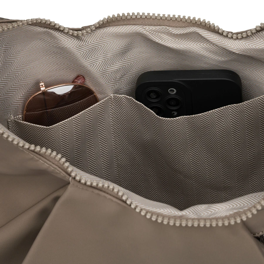 Duża, ciemnobeżowa torebka damska z poliestru, mieszcząca format A4 - Peterson