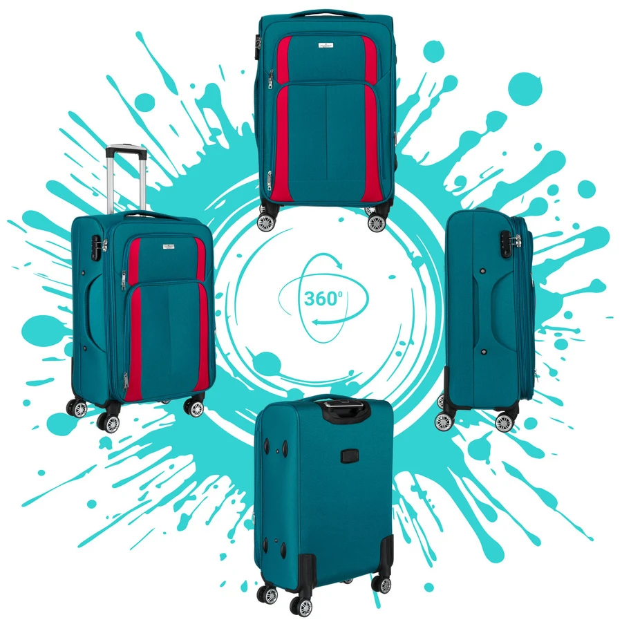 - Walizka wykonana jest z bardzo wytrzymałej tkaniny poliestrowej. Materiał odporny na wilgoć, w bardzo małym stopniu pochłania wodę, a do tego łatwy w utrzymaniu czystości.