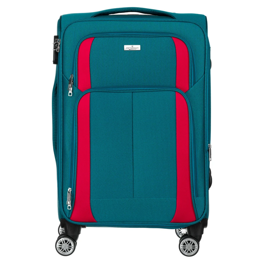 Duża walizka z praktycznej tkaniny poliestrowej w turkusowo-różowym - Peterson