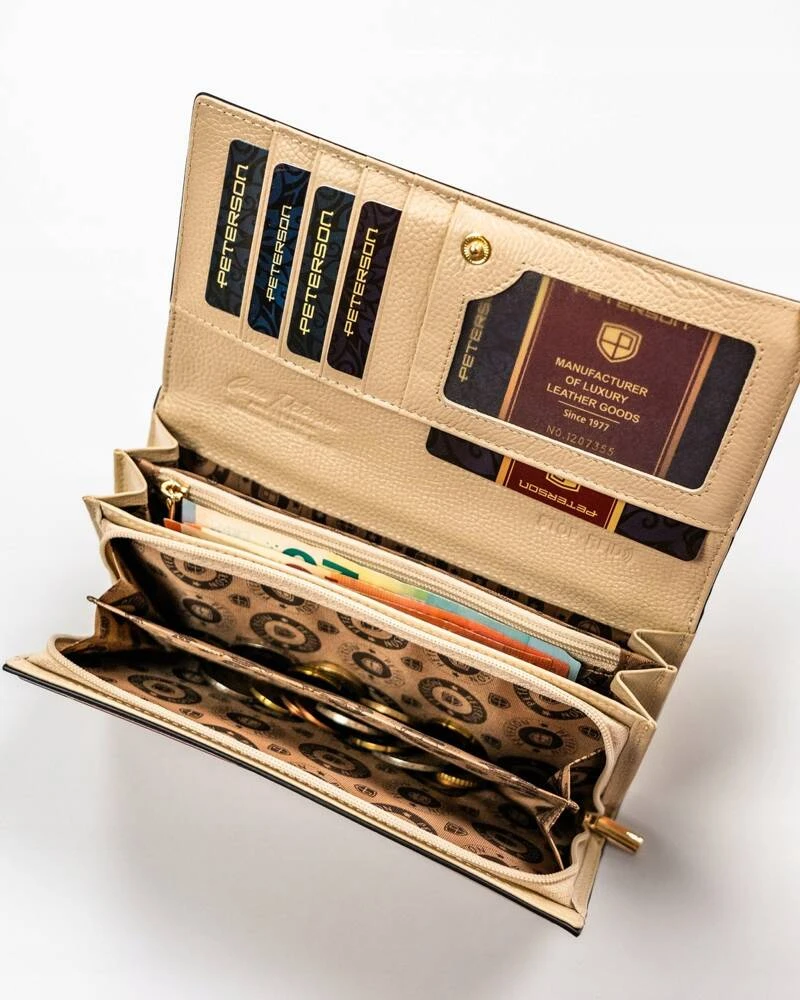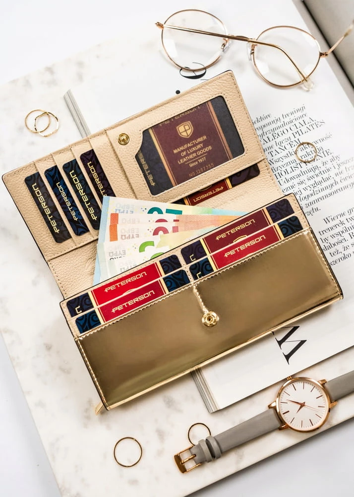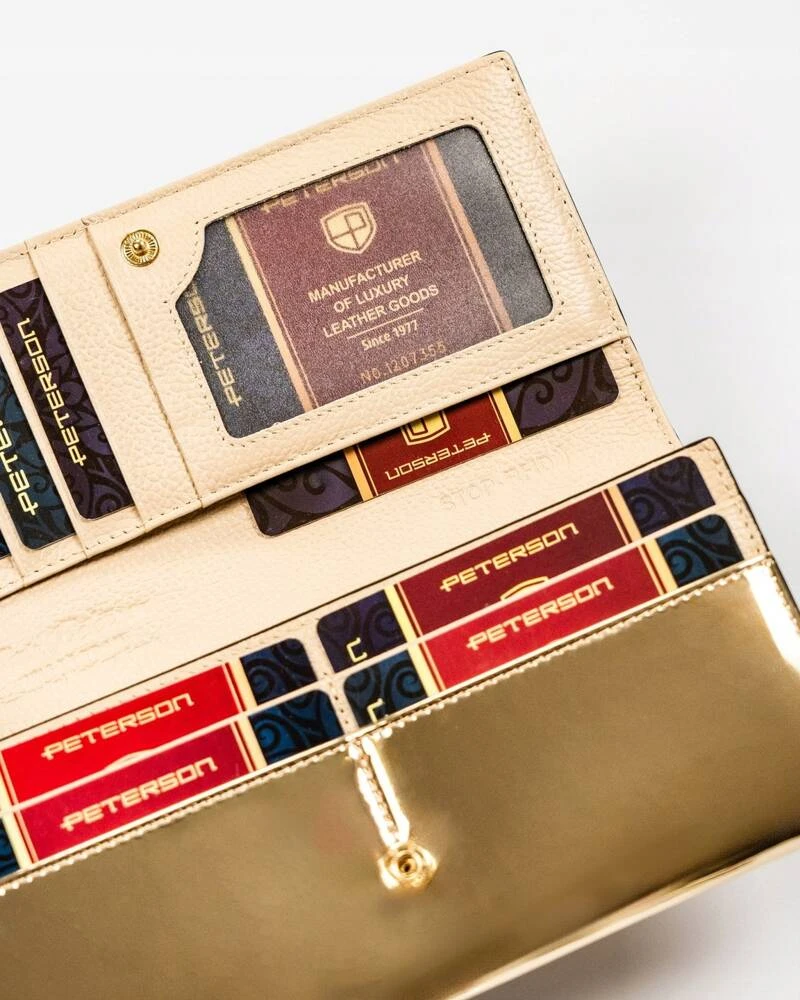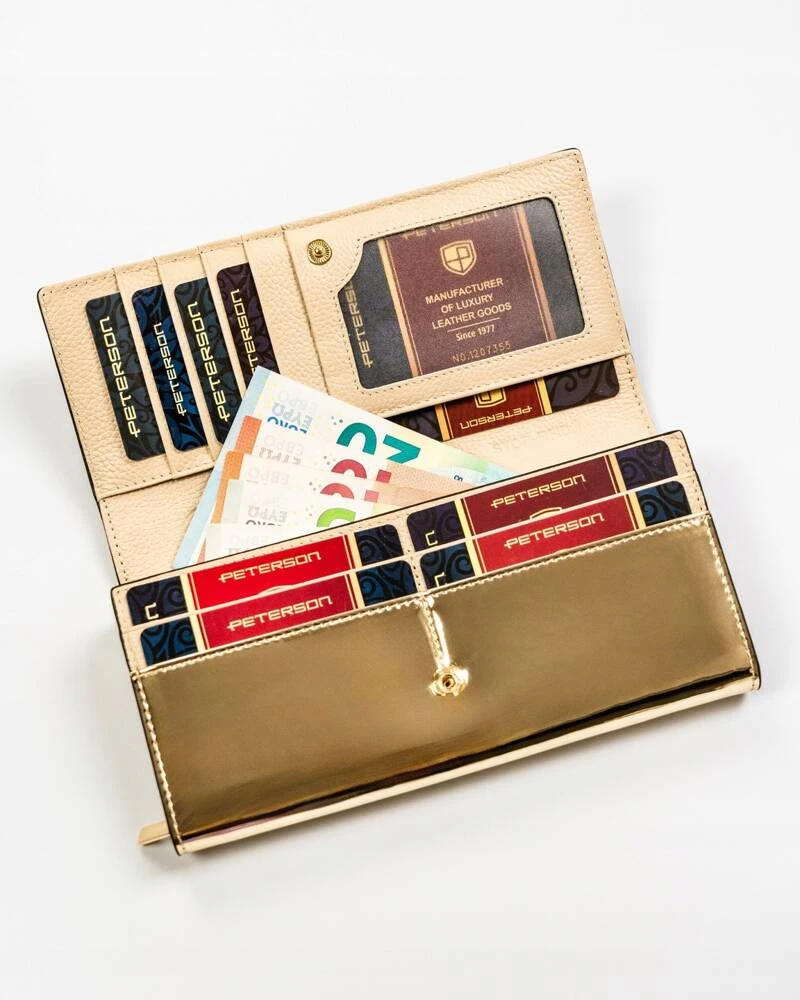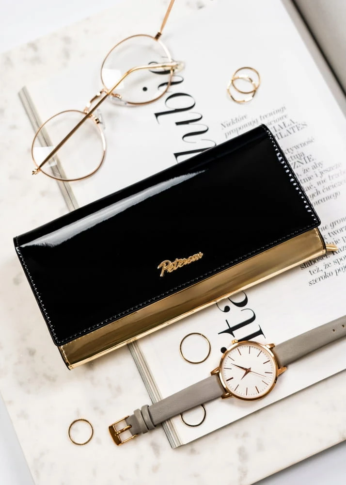 Duży, czarno-złoty portfel damski ze skóry naturalnej zamykany na zatrzask - Peterson