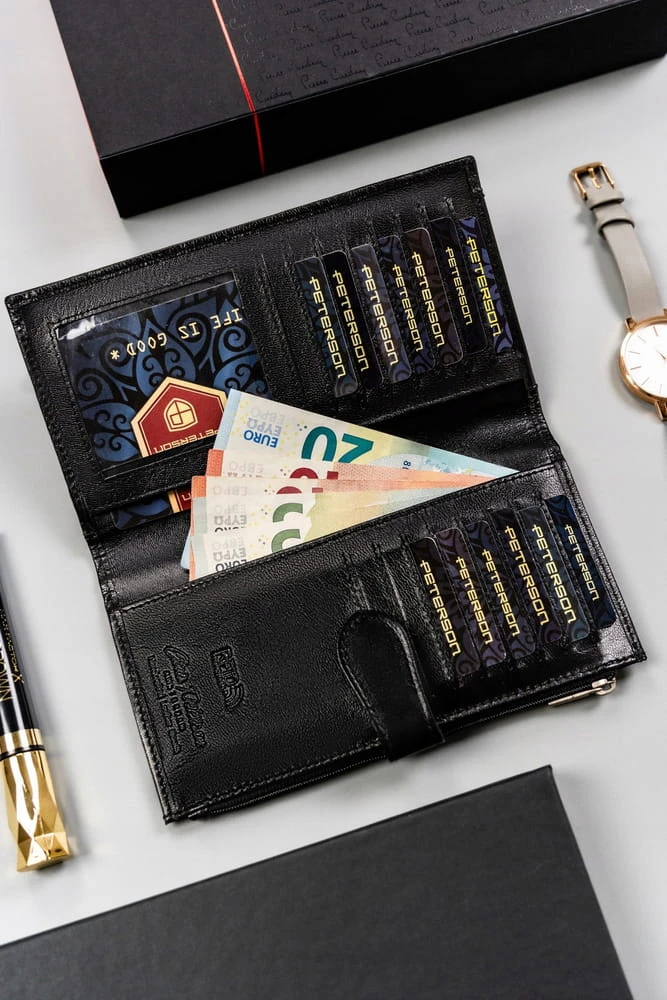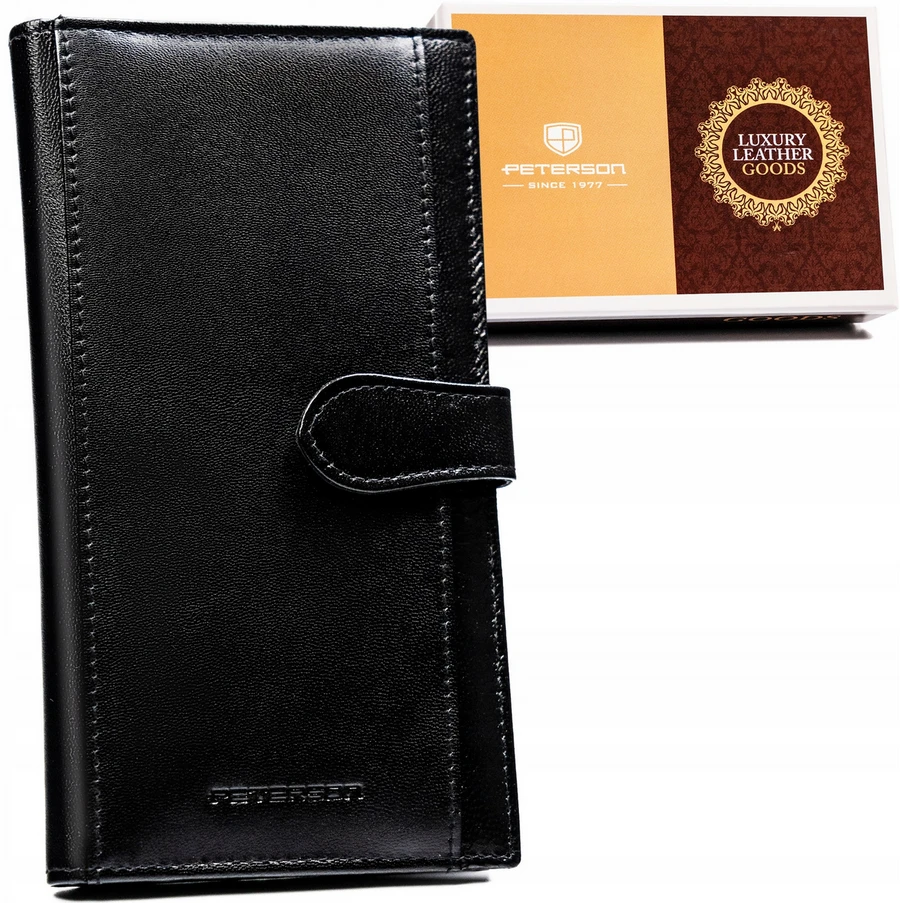Duży, praktyczny, skórzany portfel damski na zatrzask — Peterson