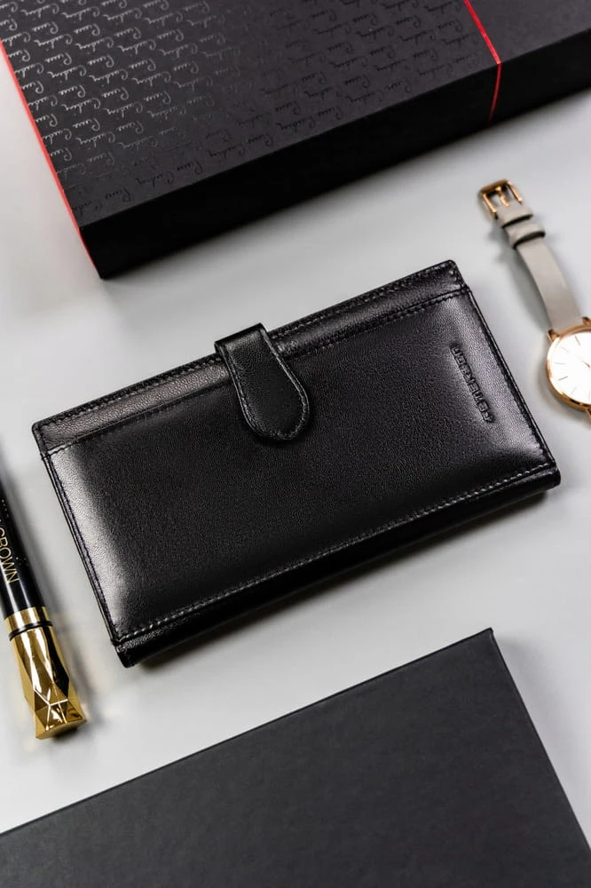 Duży, praktyczny, skórzany portfel damski na zatrzask - Peterson