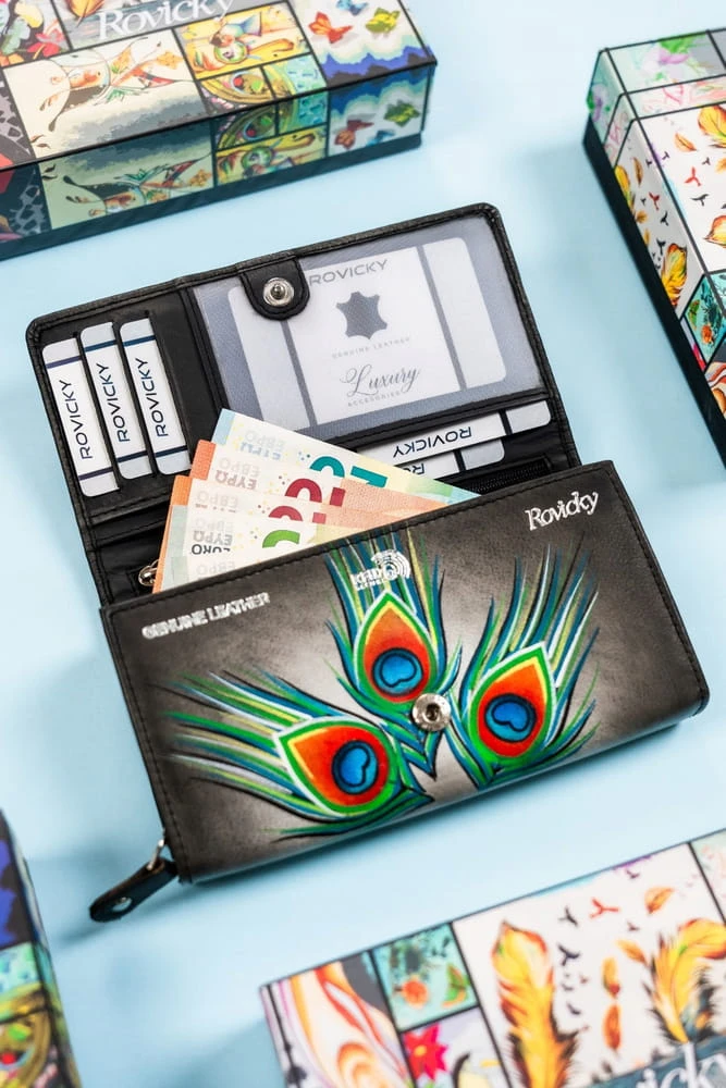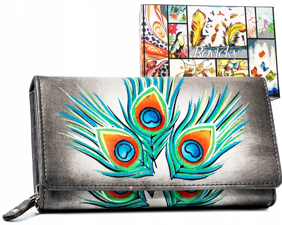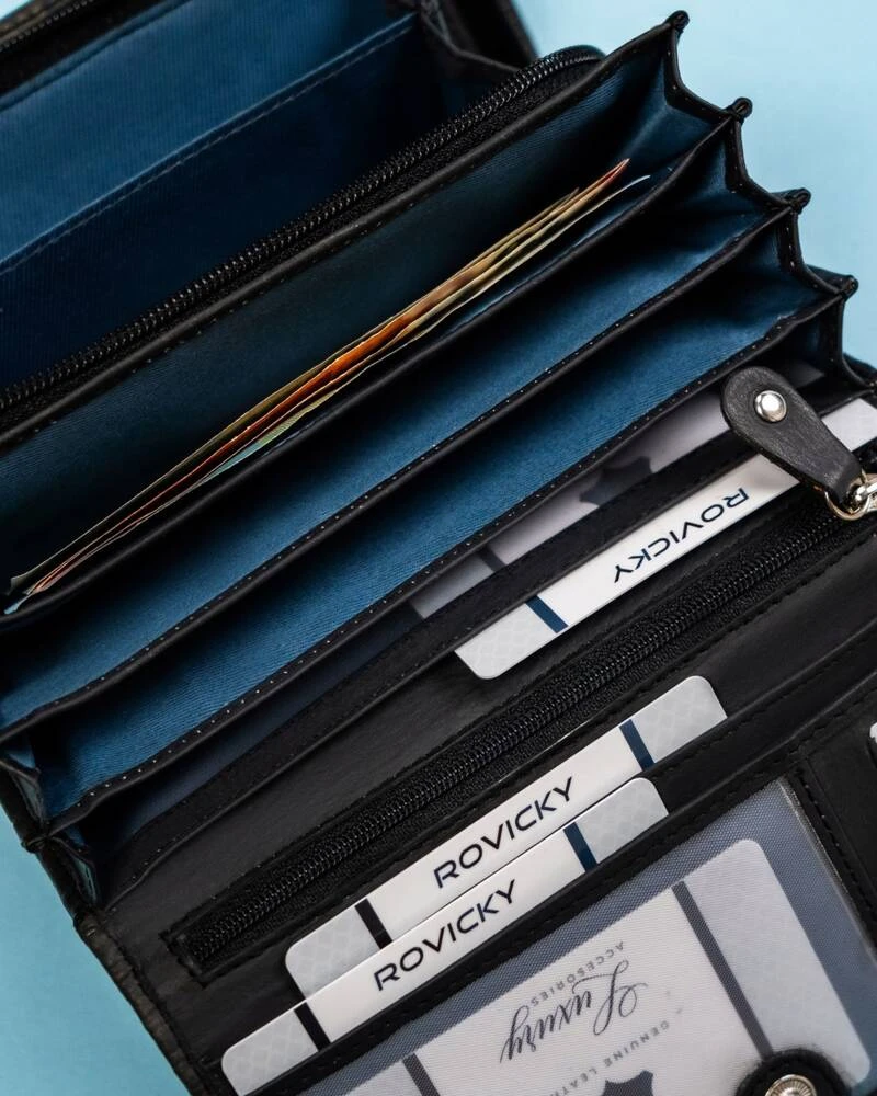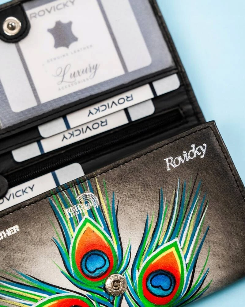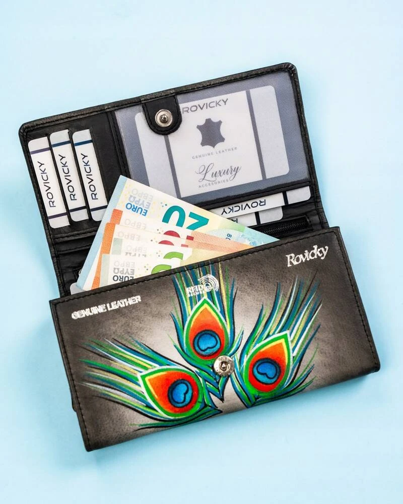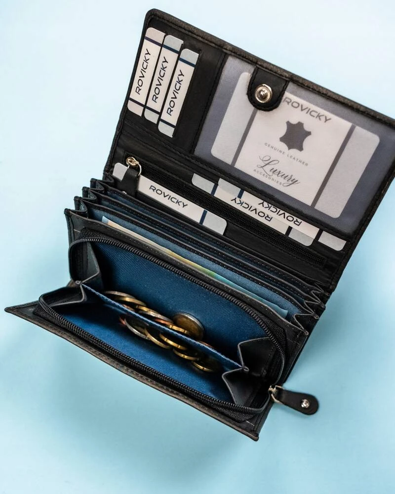 - Duży, skórzany portfel damski na zatrzask - Rovicky