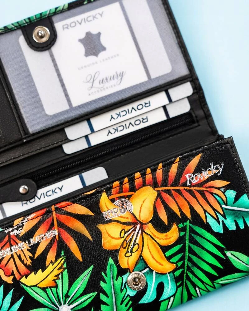 Duży, skórzany portfel damski na zatrzask - Rovicky