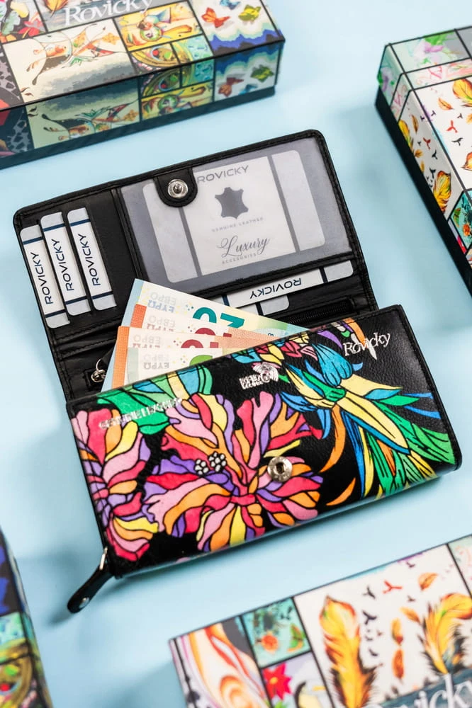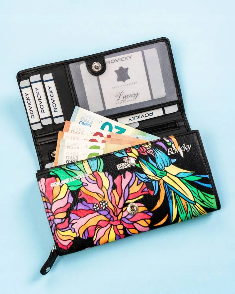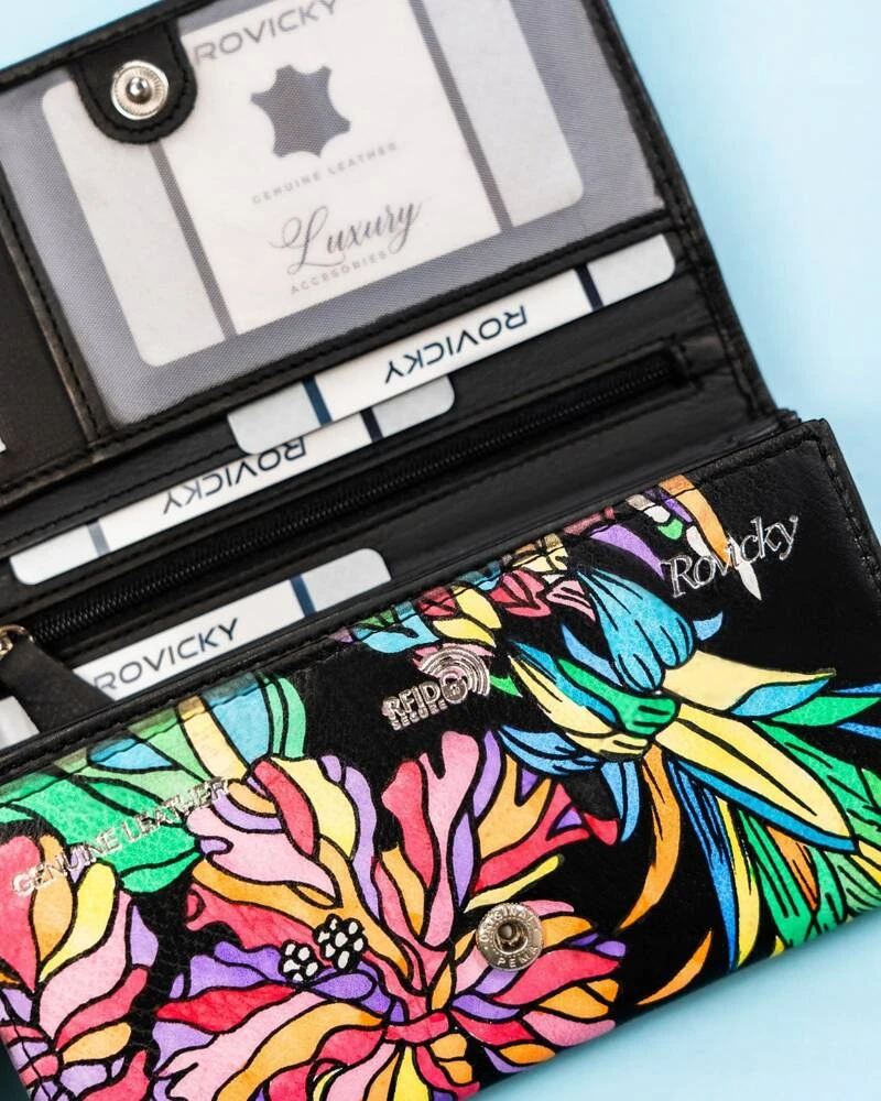 Duży, skórzany portfel damski na zatrzask - Rovicky